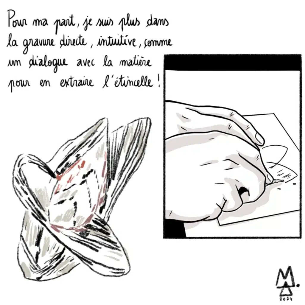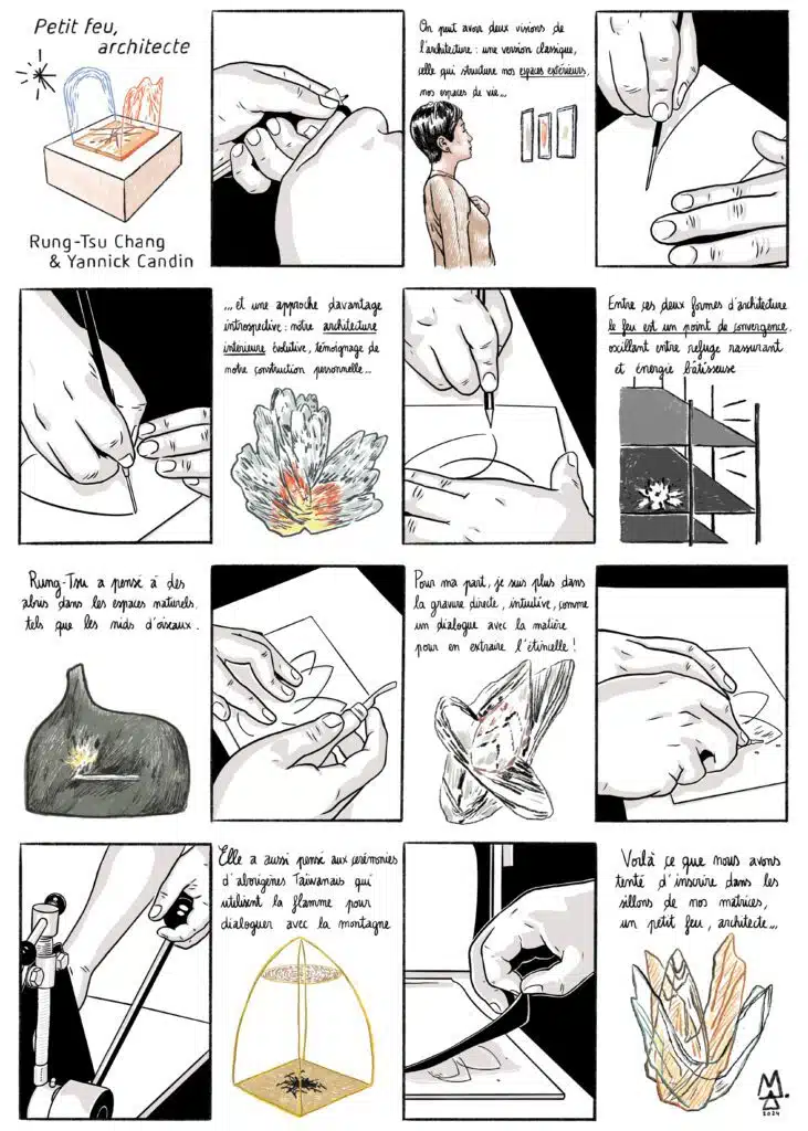 Rung-Tsu Chang et Yannick Candin sont deux artistes qui gravent la poésie, l’insularité, le rêve, le feu… sur des matrices variées en cuivre, en bois, en lino. L’exposition « Petit feu, architecte » s’est déroulée en mai 2024 à la galerie constellation mais leur travail sur l’espace, le refuge, les reliefs, l’eau… se prolonge en ce moment dans deux lieux d’exposition jusqu’à la fin du mois d’août : à la cité des Arts au sein du Banyan avec leur exposition « Maison-île » et à la galerie 33 à St Denis avec « petits espaces, grands refuges ».