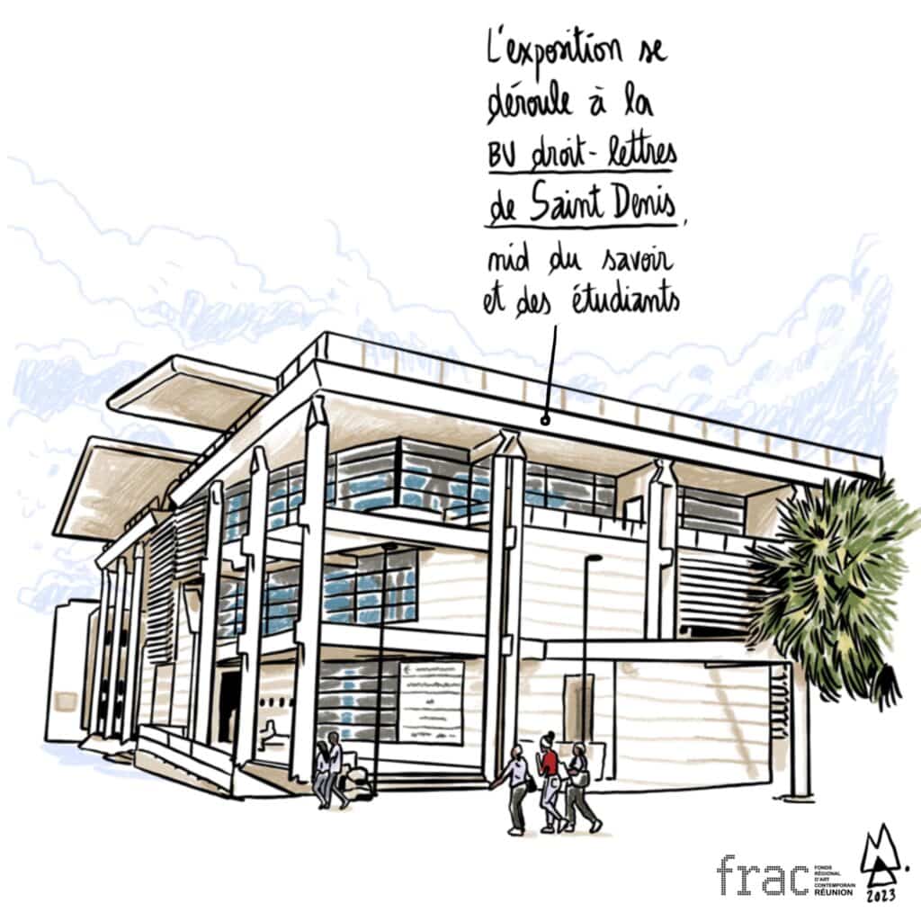 L’exposition est visible jusqu’au 20 janvier 2024 à la Bibliothèque Universitaire Droit-Lettres de Saint Denis en partenariat avec le FRAC.