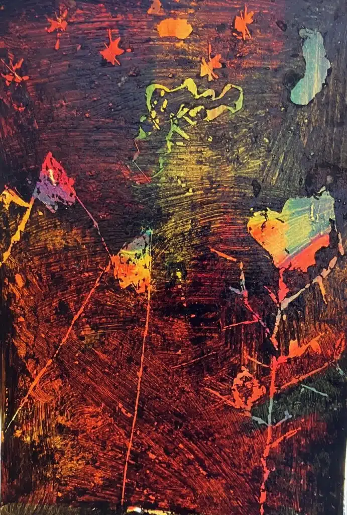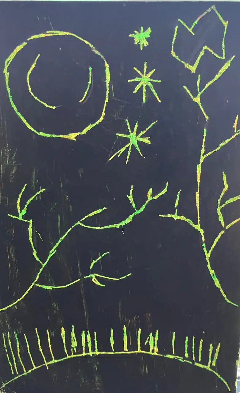 Créations des élèves des écoles de Saint-Paul, portraits d’habitants de la nuit, cartes à grater. APEELS et Les Petites Boucaniers © P. de Bollivier