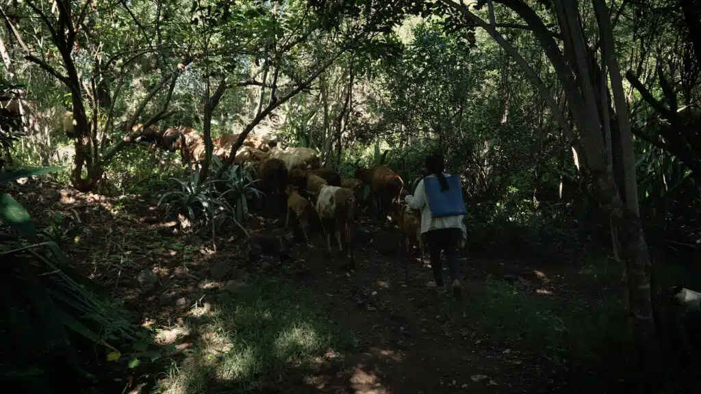 Un programme artistique et culturel au service de ces enjeux du fénwar s’est donc mis en place, à travers notamment des récoltes de paroles d’habitants du Tour des Roches, menées par la conteuse Natacha Praène et filmées par Antonio Prianon. Aux ruchers de l’école de la nature, dans les jardins de Paulo et de Fonds Imar, le long des canaux de l’étang Saint-Paul, le long des chemins pavés de Bellemène, dans les pâturages du Tour des Roches et aux alentours des grottes de la ravine Divon… les voix des habitants se mêlent au chant du vent et aux paroles des anguilles, des chauves-souris, des bœufs Moka, des paille-en-queue. Raphaël Lejeune, Georges Marie Govindama, Zanbrino Eschyle, Virginie et Firmin Barlieu nous emmènent, dans le viseur de la caméra d’Antonio Prianon et accompagnés par la conteuse Natacha Praène, dans des zistwar fénwar remplies de poésie, d’une certaine nostalgie, mais aussi de philosophie et de réflexion engagée sur notre rapport à notre environnement : à retrouver dans un film (22′) intitulé « Zistwar fénwar » réalisé par Antonio Prianon et qui sera diffusé aux jardins de Fonds Imar samedi 24 mai, et au sein de l’exposition à la Maison Serveaux.