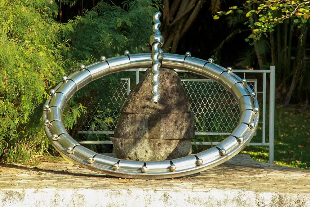 Sous le double signe du feu et du métal, on retrouve donc jusqu’au 20 juillet les œuvres de Claude Viseux et Christian Jaccard. Le point commun entre ces deux artistes : des références à la culture indienne, source d’inspiration intensifiée lors de leur venue dans l’île.