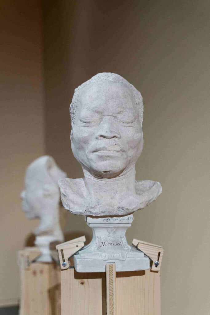 Mon papa, mes oncles et mes cousines ont vu des traits de ressemblance avec le nez, le menton… Mais moi non, car, en plus, ils avaient les yeux fermés pendant le moulage et c’était difficile de respirer. Moi je me suis plutôt identifié dans le récit de la vie de João, dit Dieko, qui était un meneur et était venu avec son petit frère, Padekhio Coco. Les deux ont été interrogés. Ce João a été moulé trois fois, il y a même un buste complet de lui. Il avait dû créer des liens avec Eugène de Froberville à qui il a raconté plein de choses. À un moment donné, il a mené la pétition pour que tous les captifs puissent rentrer au Mozambique. Mais les Anglais n’ont pas accepté. Et ce n’est pas si mal parce que maintenant nous sommes très bien ici.