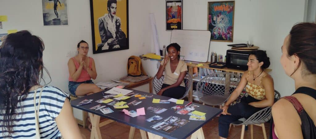 Parmis les participantes, Rania et Laura m’ont fait part de leur ressenti à l’issue de l’atelier. “ C’était la première fois pour moi et j’ai été ravie de me prêter à cet exercice. C’est un bel outils de sensibilisation quel que soit le degré d’attrait que l’on a pour le sujet, au départ. Cela donne envie d’en parler à son entourage, et aux hommes cis surtout”, m’explique Rania. Pour Laura, c’est autant de questions que de réponses apportées: “Cela donne des éléments de rhétoriques très intéressants, et permet de se rendre compte que certaines de nos réactions en tant que femmes sont non seulement légitimes mais utiles pour faire avancer les choses. C’est un vrai outils pour toucher d’autres personnes qui ne sont pas dans des cercles engagés, et cela pose la question plus générale de comment sensibiliser des personnes très éloignées du sujet. En résumé, cet atelier m’a donné des réponses mais m’a apporté des questions aussi.”