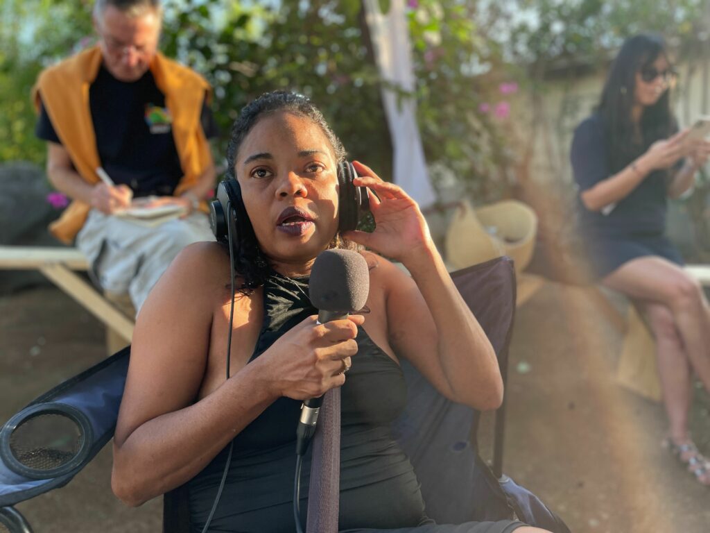 Tout le monde attend l’arrivée de radio Babouk, web radio de la Friche du Port, pour son émission Dan’ Kartié, qui donne la parole aux habitants pour parler de leurs quartiers. Même si le studio est mobile, ce sont ses animateurs qui reçoivent et viennent avec boissons et biscuits.
