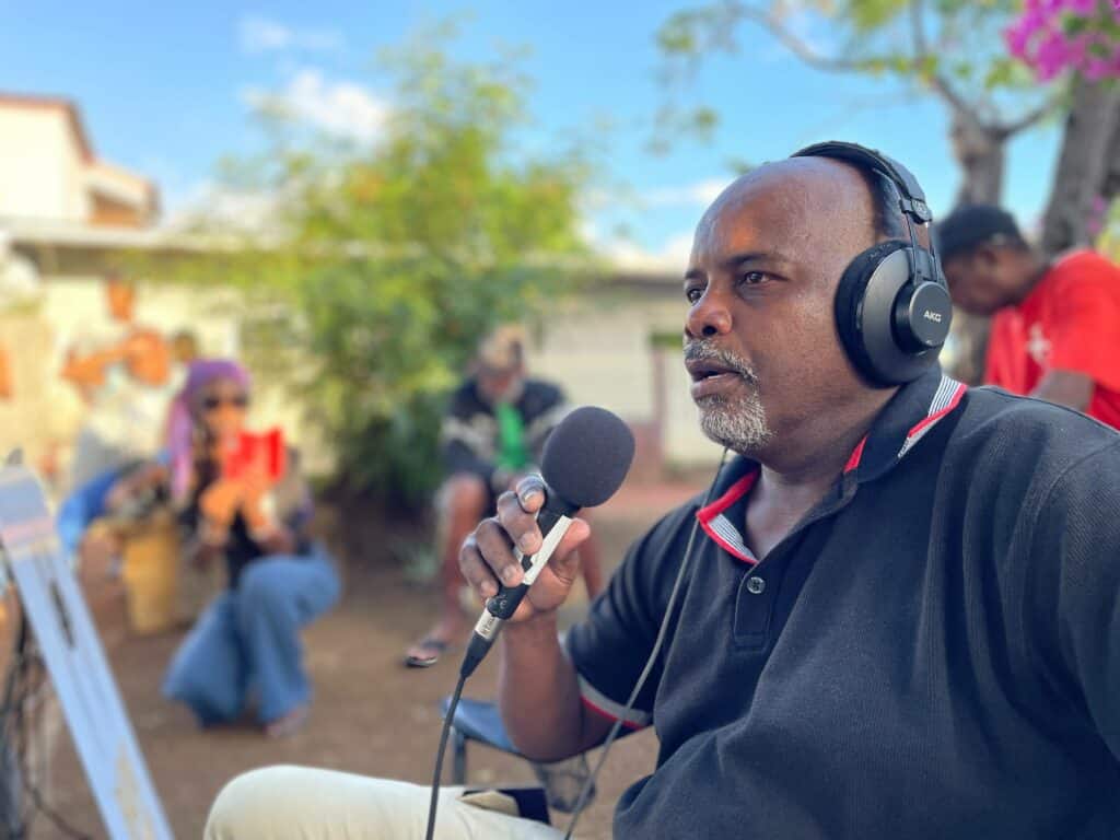 Eric, mercredi, animait Dan’Kartié, l’émission de radio Babouk. (Photos et vidéo de Franck Cellier)