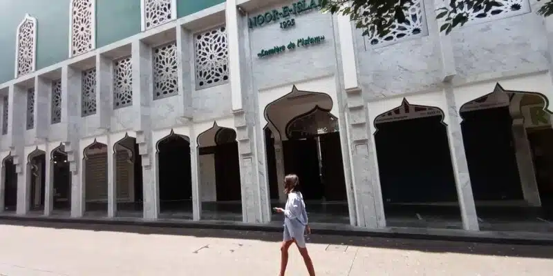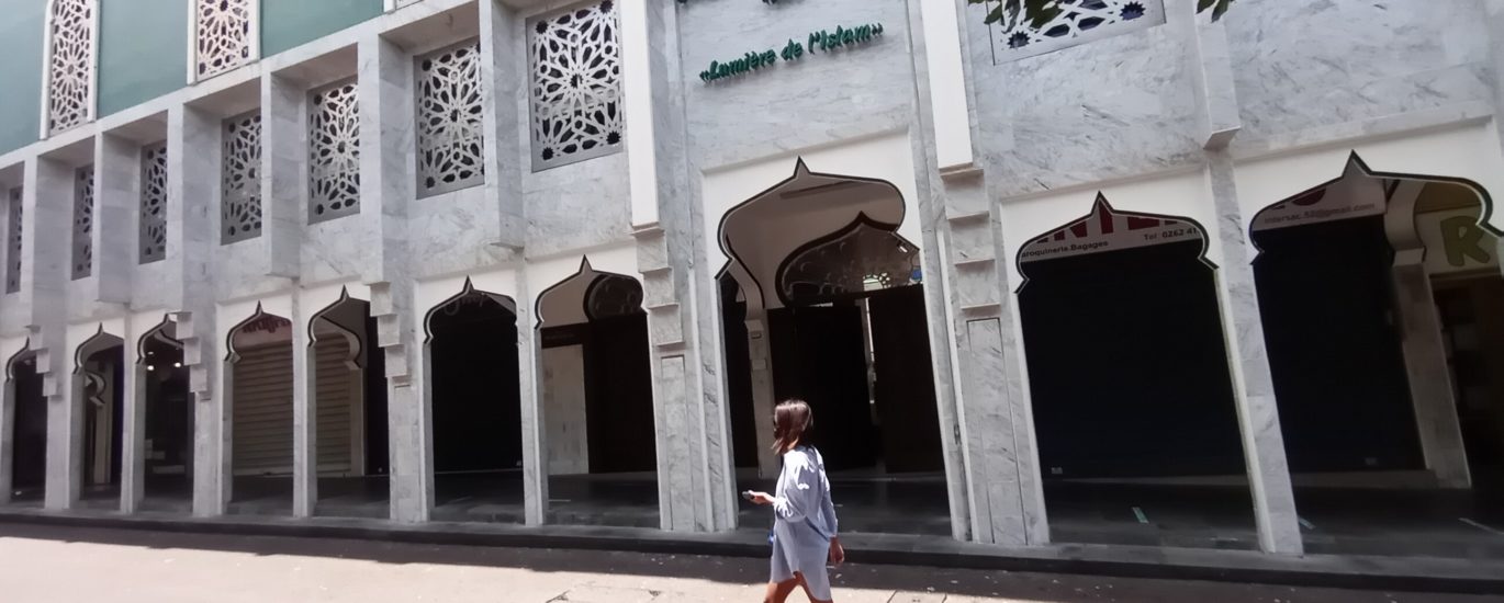 Il est 18h dans la rue du Maréchal Leclerc, la principale artère commerçante de Saint-Denis : alors que le jour décline, le chant du muezzin s’élève au-dessus de la ville et les fidèles musulmans se pressent vers l’entrée de la mosquée. Ici, la prière du soir, le vendredi en particulier, est la plus importante ; elle détermine jusqu’au rythme de la capitale tropicale, la plus importante et la plus peuplée des agglomérations de l’Outre-mer français – un peu plus de 150 000 habitants, au bord de l’océan Indien. Une demi-heure plus tard, inutile de chercher à faire du shopping dans le centre de Saint-Denis. La majorité des commerçants est occupée à prier, ils ont baissé le rideau de fer de leur échoppe.