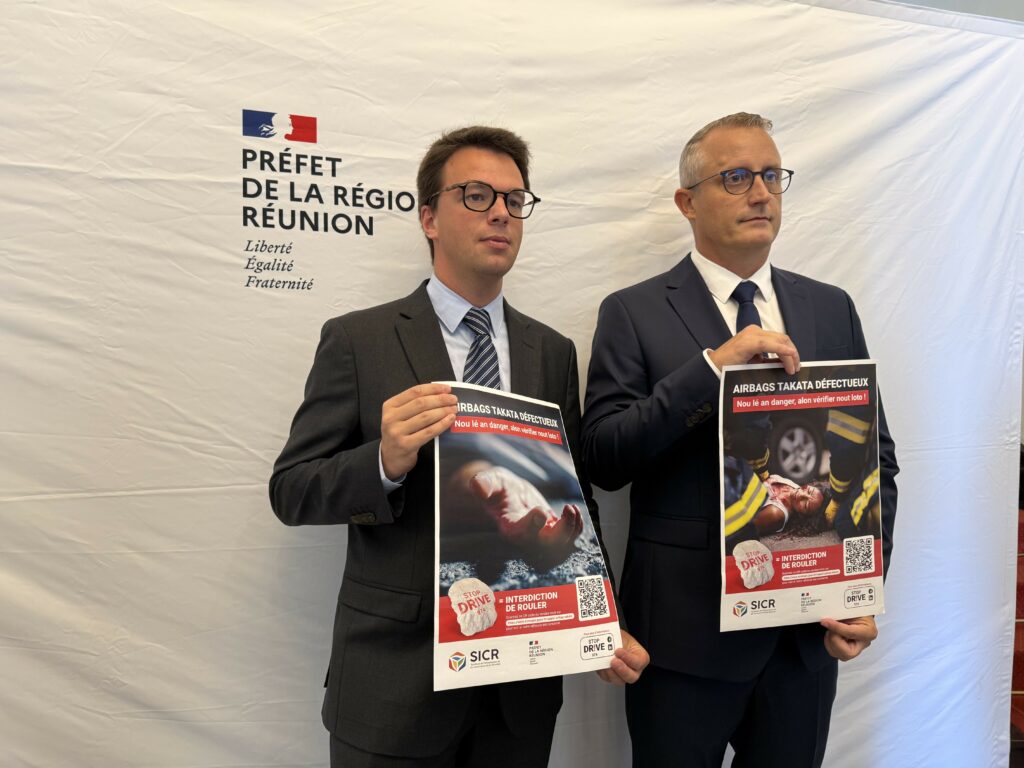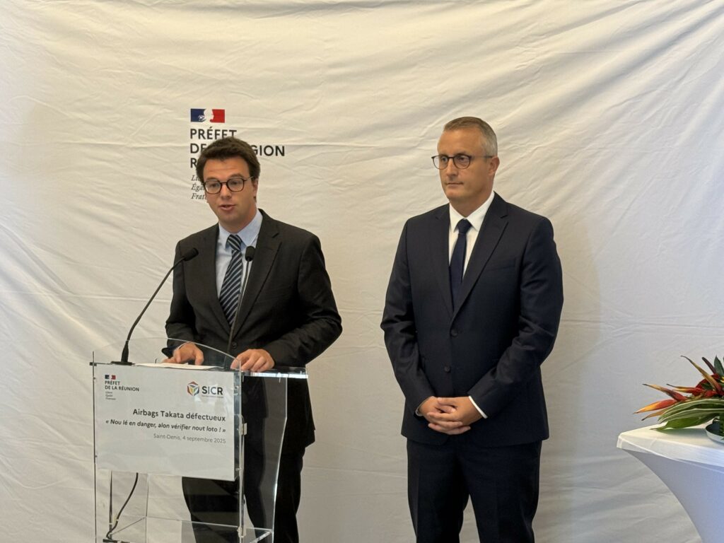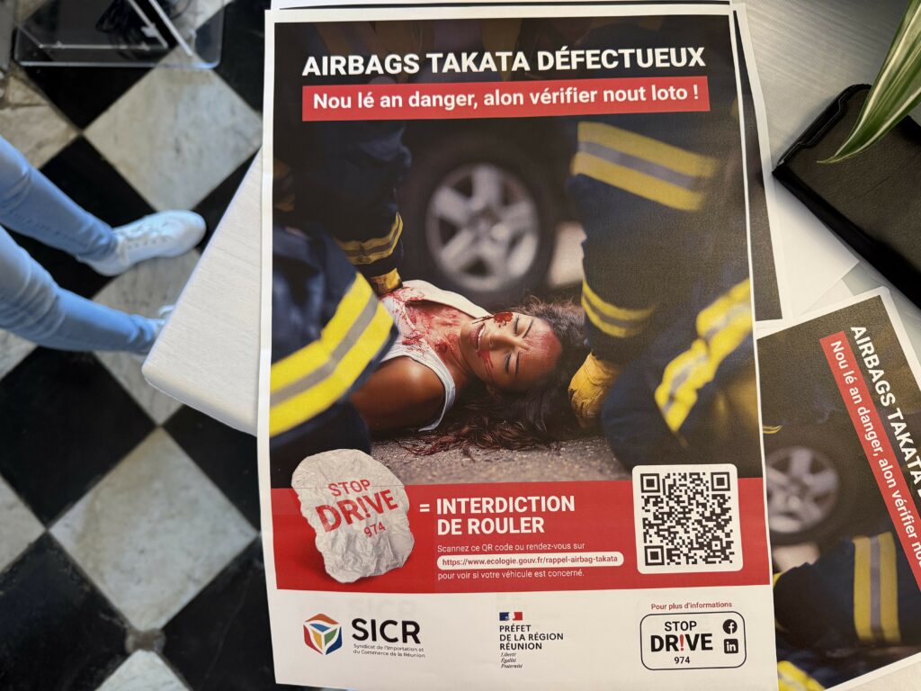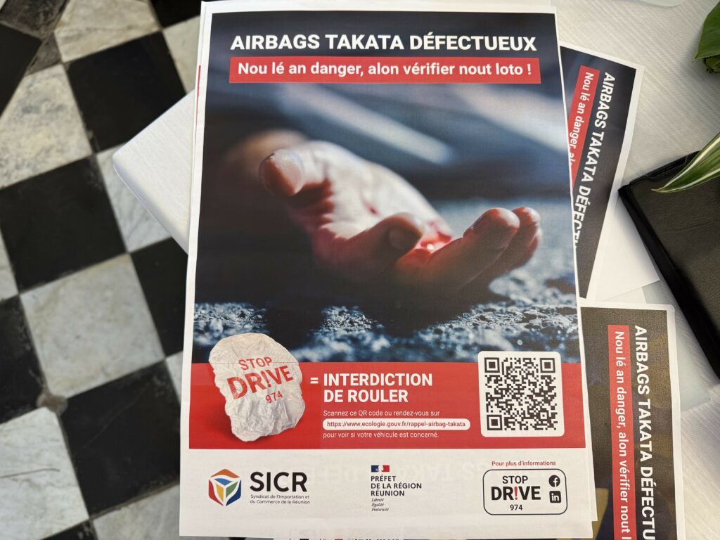 Vincent Bernard-Lafoucrière, directeur du cabinet du préfet, précise : « On est là aujourd’hui pour rappeler aux Réunionnais les risques qu’ils encourent avec l’airbag takata. » « En février il y avait encore 35 000 véhicules potentiellement concernés. On a fait des progrès mais il reste encore plus de 20 000 véhicules potentiellement concernés donc on relance une campagne de sensibilisation, d’alerte. Aujourd’hui les stocks sont disponibles, on incite tout le monde à vérifier son véhicule, et à en parler autour de soi, car il y a un vrai danger de mort avec ces airbags takata. »