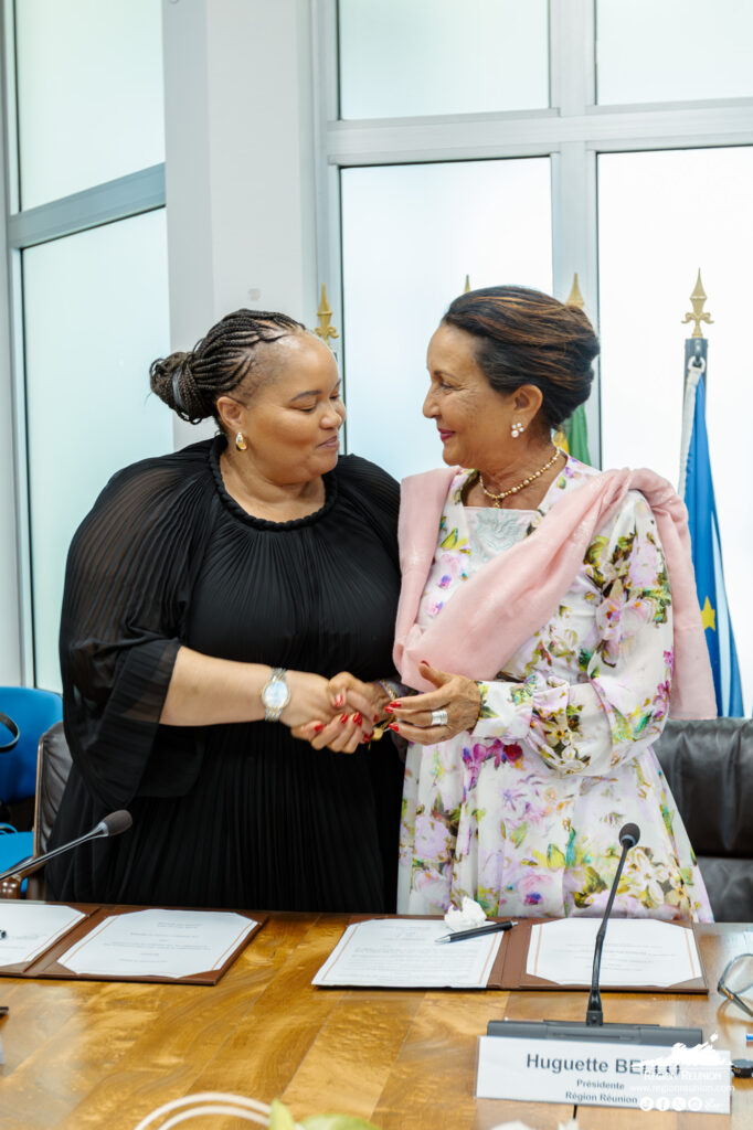 La Présidente de la Région Réunion Huguette Bello et la Vice-ministre des Sports, des Arts et de la Culture de la République d’Afrique du Sud Bertha Peace Mabé ont signé ce vendredi 19 décembre, à l’Hôtel de Région, une déclaration d’intention visant à renforcer et structurer leur coopération dans les domaines des arts, de la culture et du patrimoine.