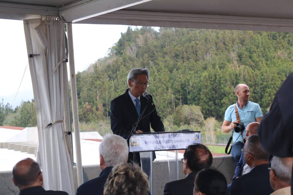 Sous les habituels nuages de la Plaine des Cafres, M. Thien-Ah-Koon commence son discours en rappelant que le 21 mars 1925, il y a cent ans jour pour jour, le président de la République Gaston Doumergue promulguait la loi érigeant le Tampon au rang de commune. Une inauguration qui rime aussi avec anniversaire, et qui se place sous le signe de trois éléments : « l’eau, la départementalisation et le dérèglement climatique. »