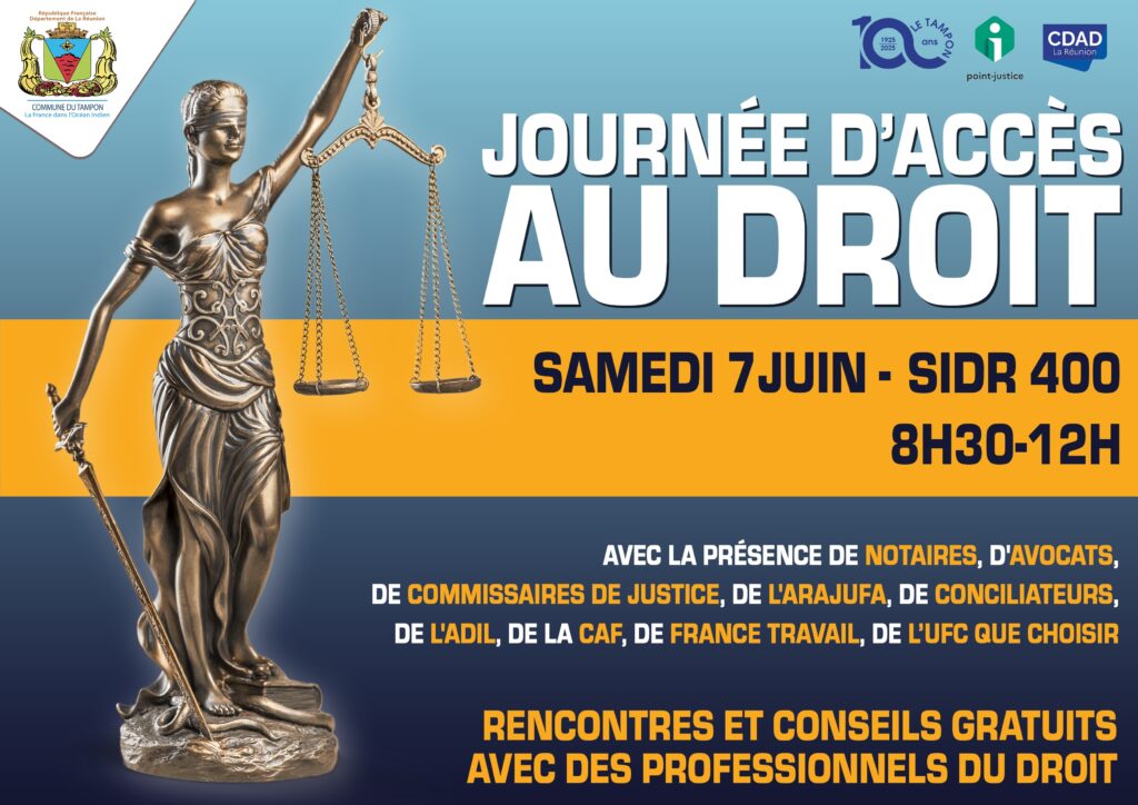 La Ville du Tampon organise sa première journée d’accès au droit le samedi 7 juin 2025 de 8h30 à 12h à la SIDR 400