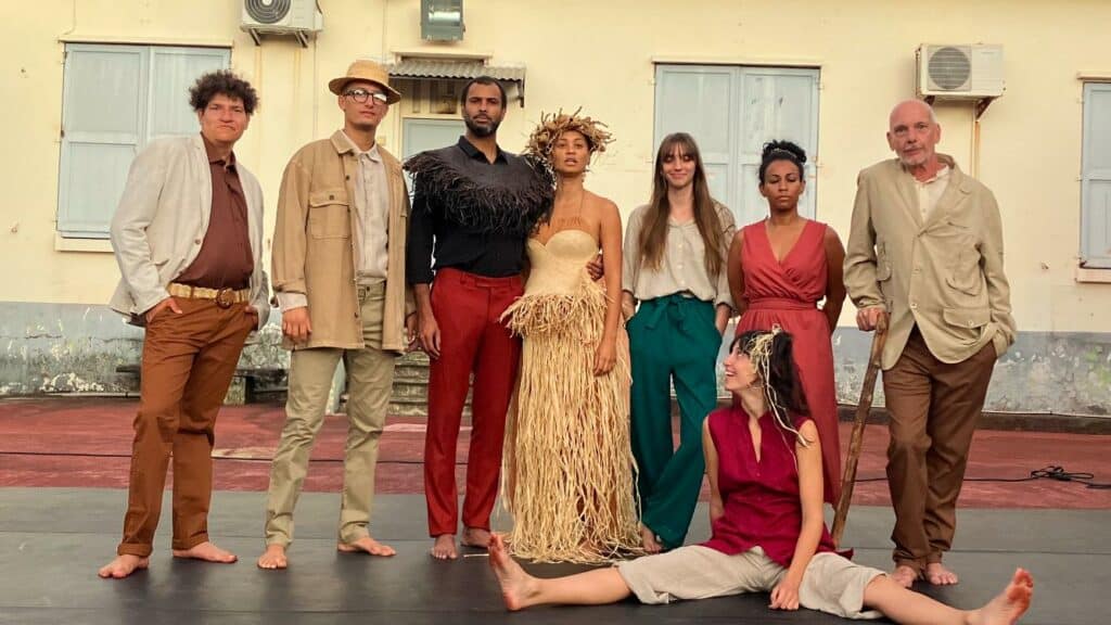 Florient Jousse (co-auteur) : » Ça fait maintenant un an que nous avons démarré la dernière phase de Lakadémi Komidi avec la création d’Un Songe, libre adaptation du Songe d’une nuit d’été de William Shakespeare. Après le travail de réécriture mené à quatre mains par Vincent Roca, Florient Jousse, Éric Bouvron et Elena Michielin, pour rapprocher la pièce originelle de La Réunion, nous sommes déjà arrivés à la dernière phase de répétitions avant la première pour le Komidi. C’est très excitant. Comme toujours avant une première, la concentration monte d’un cran. On est dans les derniers réglages et on partage ça avec un public scolaire, sans concession, dans des collèges et lycées. On joue pour eux et ça nous fait faire des bonds de géants. Voir tous ces interprètes se révéler au cours de ces trois années de formation est sans doute la plus belle récompense pour nous, l’équipe pédagogique. Il y en a eu du chemin entre les auditions et leur incarnation d’aujourd’hui, entre mouvement collectif et précision dans les situations comiques et dramatiques. Et la route ne fait que commencer. Ils ont suivi une formation en Italie, bientôt en Espagne. Si le projet se lance symboliquement à La Réunion, il va jouer au Mois Molière à Versailles puis à Avignon, dans le prestigieux Théâtre des Gémeaux. C’est une belle équipe qui s’est révélée ensemble et la pièce est forcément chargée de cette énergie. L’histoire commune qui s’est écrite dans ce projet pilote de Lakadémi Komidi reste une aventure hors du commun, que l’on soit du côté des bénéficiaires ou des pédagogues, avec cette constatation évidente : « On ne cesse jamais d’apprendre« .