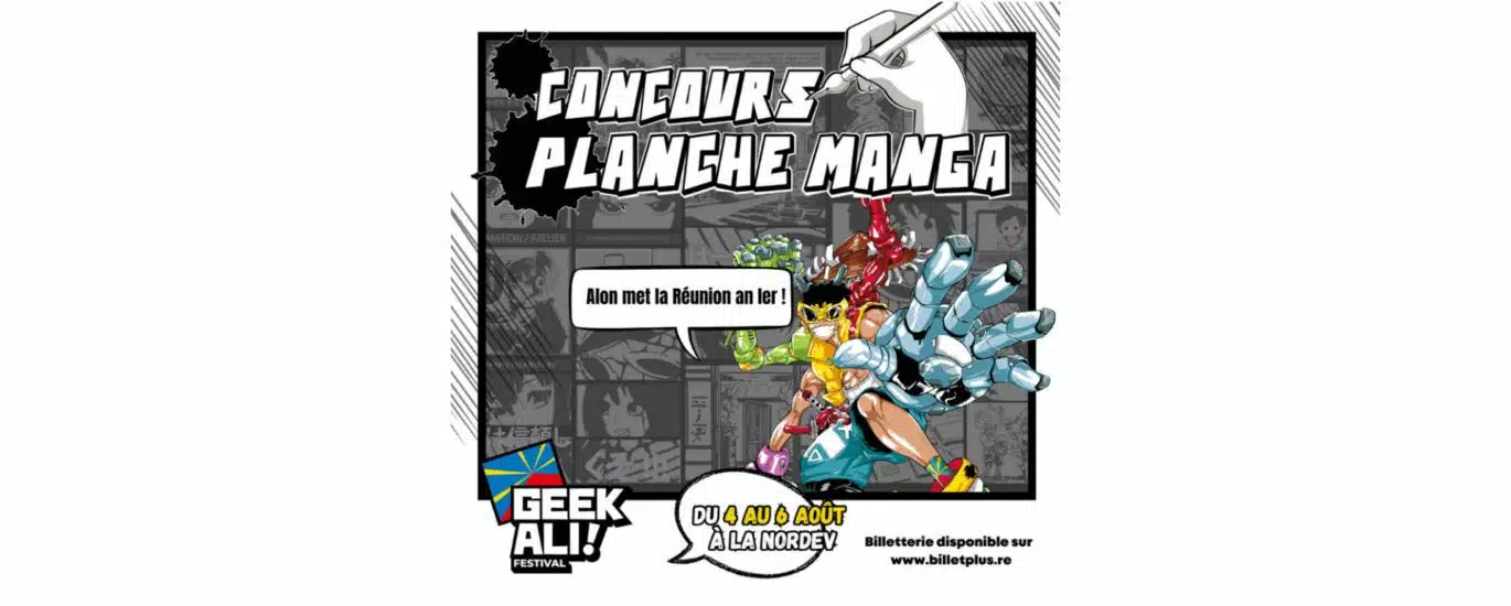 Pour la 5e édition du salon, l’association Geekali lance un grand concours de planche manga ouvert à tous. C’est à partir du 3 juillet que vous pourrez vous inscrire sur le www.geekali.re. La grande délibération aura lieu le 5 août prochain lors du festival.