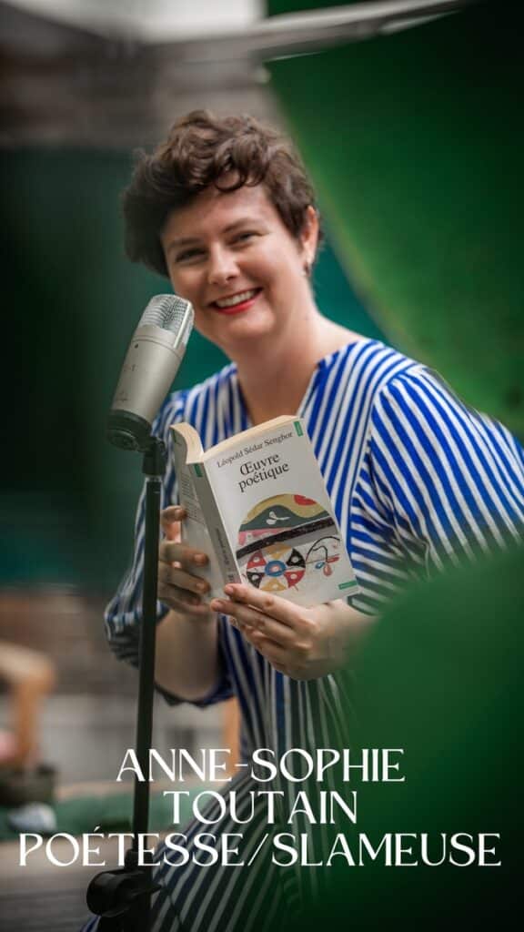 Le slam est une véritable passion pour notre poétesse Anne Sophie Toutain, son clip l’ Antre des Secrets en est l’illustration, elle y signe les paroles. Ce clip a été réalisé par Tony Boyer en collaboration avec Mika’H et la musique écrite par Alex Sorres. Le slam, elle va aussi l’utiliser avec les entrepreneuses dans des ateliers Slam « Pitch ton entreprise en Slam » auprès de l’association de femmes FELR mais aussi lors de réalisation de courts métrages auprès du SNU. Passionnée par les mots, Anne Sophie, les utilise, les marie et les offres à travers l’écriture de textes personnalisés : que ce soit pour des occasions spéciales ou des projets spécifiques, elle crée des œuvres littéraires adaptées aux besoins de ses clients. Elle partage aussi ses créations originales lors de déclamations publiques, mêlant poésie et art de la scène pour toucher et inspirer son audience à travers des performances scéniques. La poésie, elle lui donne vie chaque jour. En plus de ses activités thérapeutiques et artistiques, elle est l’auteure du recueil de poésie « La Mémoire des Astres ».