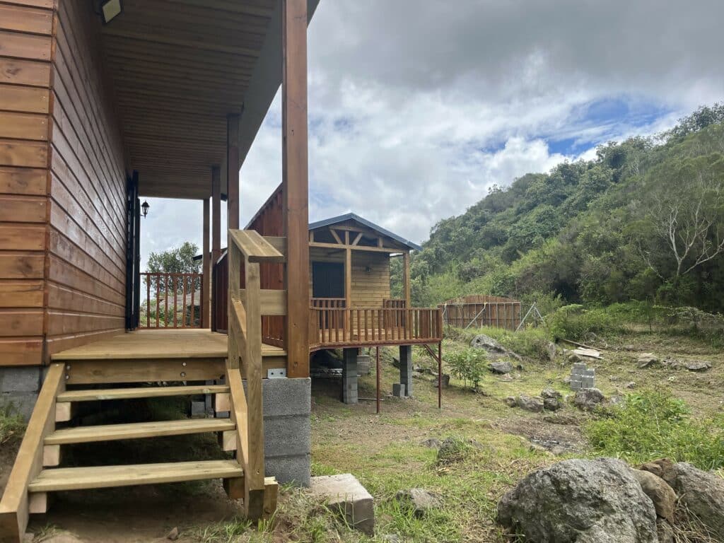 Au milieu de ce terrain se trouve un lieu-dit, la Mare Guelain, qui est devenu le nom du gite. C’est un espace qui crée une piscine naturelle lors des fortes pluies, mais qui ne présente aucun danger pour le premier bungalow et ceux qui viendront. En effet, car ces derniers sont construits sur pilotis, une idée originale pour peut-être se démarquer de la concurrence. ‹‹ Le repas aussi, on va faire quelque chose qui n’est pas fait sur la Nouvelle, mais on ne va pas en dire plus pour le moment… ››