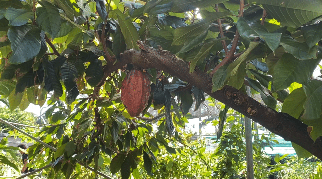 Le carreau de cacao est maintenant grand d’un hectare et demi . D’ici quatre à cinq ans, Franck Morel souhaiterait récolter une tonne de cacao qu’il pourra transformer en une tonne de chocolat.
