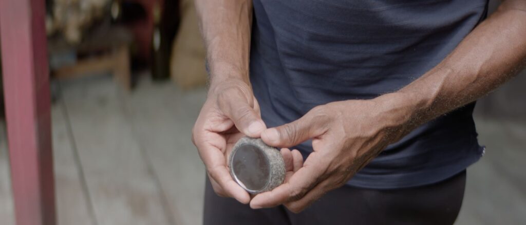 Il faut saluer la grande justesse et la richesse du jeu des acteurs, la profondeur des personnages. La langue est savoureuse, les images somptueuses. La musique et les chants d’Ann O’aro sont comme le souffle du vent. Le silence est majestueux, attentif, et habité : le rythme du film est celui d’une lente respiration. Le récit liane autour d’un objet discret, le coruskan, un galet rond qui tient dans la main et sur lequel est collé un petit miroir qui réfléchit la lumière du soleil : jeu d’enfant ? C’est surtout un signal transmis de génération en génération, il ramène à des temps anciens où il fallait se cacher pour survivre…
