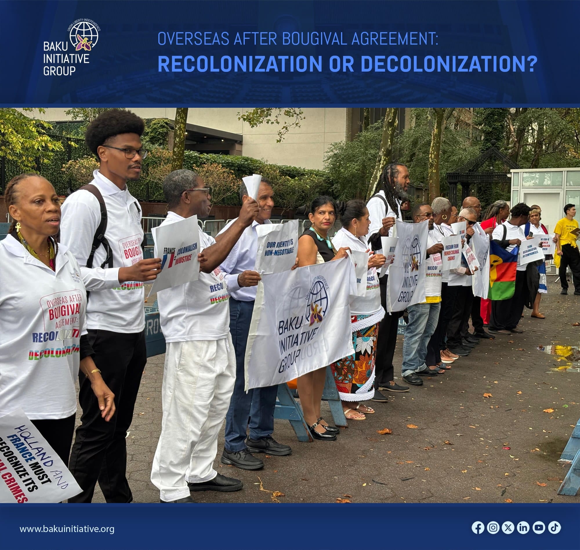 Manifestation demandant la décolonisation de la Kanaky et d’autres terres françaises ou hollandaises. Extrait du site du Baku Initiative group.