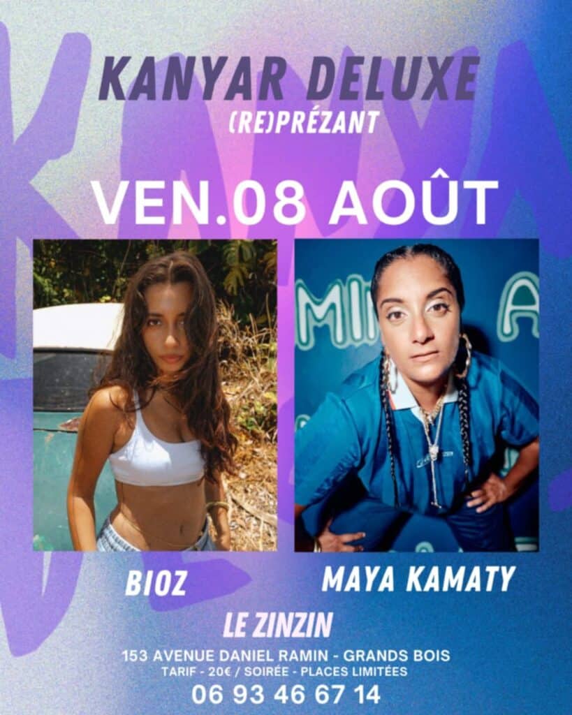 Kanyar Deluxe conseille ses artistes dans les vagues d’une industrie complexe et fortement concurrentielle, car, comme le rappelle Maya Kamaty, à Paris, 100 000 morceaux sortent chaque jour. Dans une ère où les artistes émergent·e·s sont encore mal rémunéré·e·s, réussir à vivre de la musique reste un autre combat. Le pari du label est d’accompagner, mais sans faire miroiter de rêve inatteignable. Pour autant, ce n’est pas le talent qui manque chez les sept artistes de Kanyar Deluxe, dont la majorité se produira ce week-end au Zinzin, à Grands-Bois.