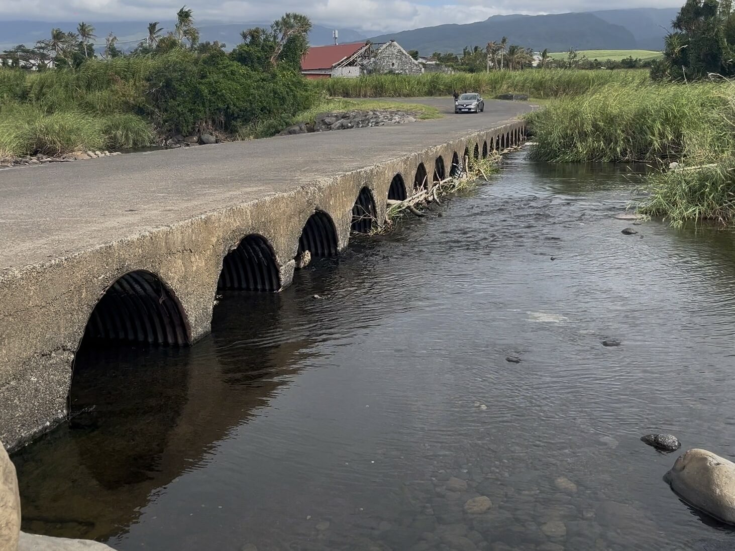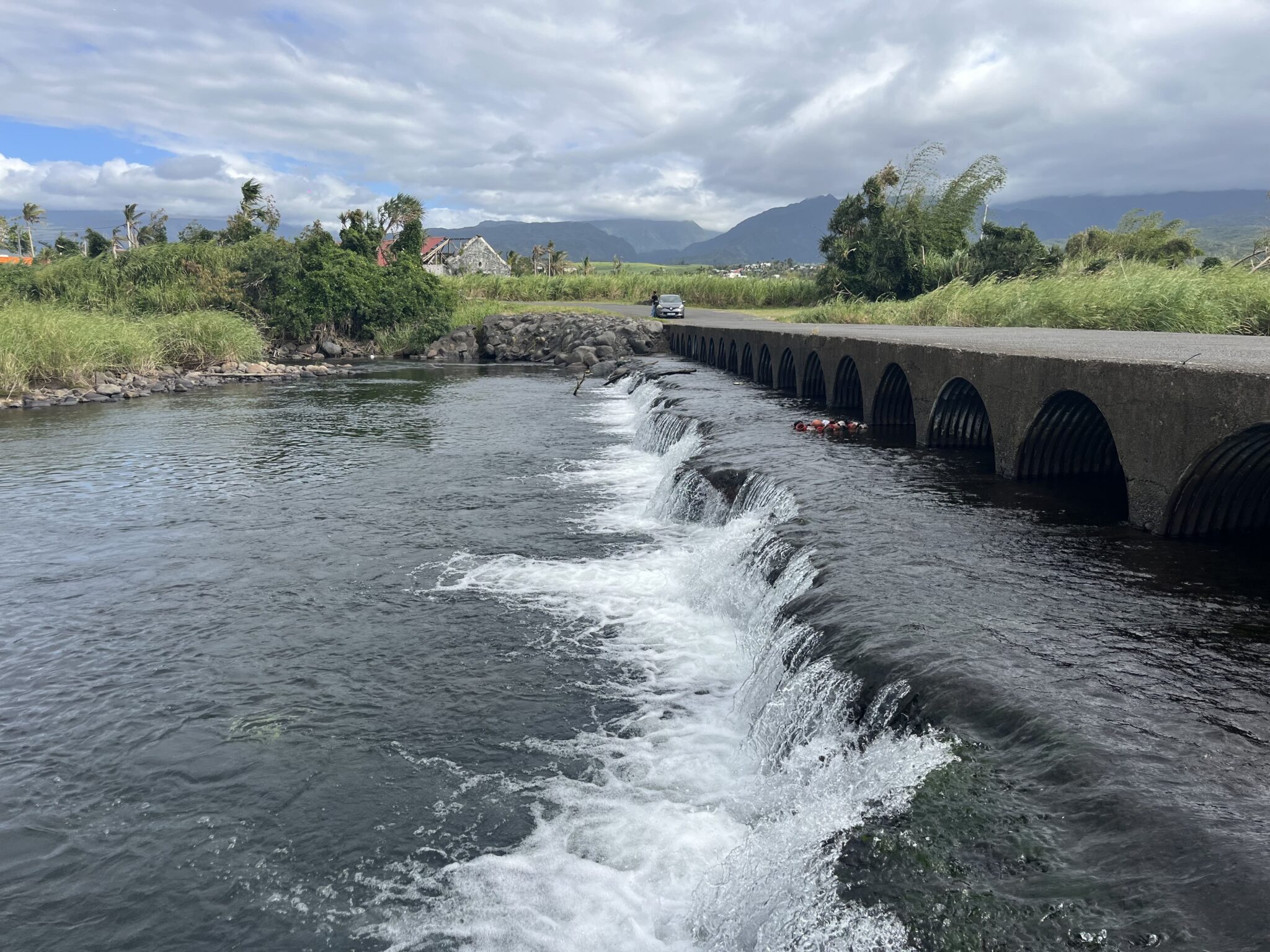 Le radier de Beauvallon avait été construit provisoirement en 1993, lorsque le pont avait été endommagé par des pluies, pour permettre aux habitants des deux quartiers de traverser. Cet equipement, sûrement construit dans l’urgence, ne répond pas aux politiques de « préservations et de restauration de la continuité écologique » depuis 2020 selon l’arrêté préfectoral du 02 mai. Le radier est donc considéré comme illégal depuis cinq ans. Fairouse Attiki, la responsable de l’antenne Est à la Direction de l’environnement, de l’aménagement et du logement (DEAL), explique que l’infrastructure actuelle représente un obstacle pour certains poissons de la rivière et perturbe donc l’écosystème. De plus, la continuité écologique serait aussi perturbée par des canaux de « pêche bichique » illégaux installés aux abords du radier. Selon madame Attiki, une voie de remplacement devrait voir le jour à côté du site de la démolition. Ce chantier devrait en partie être pris en charge par la Cirest.