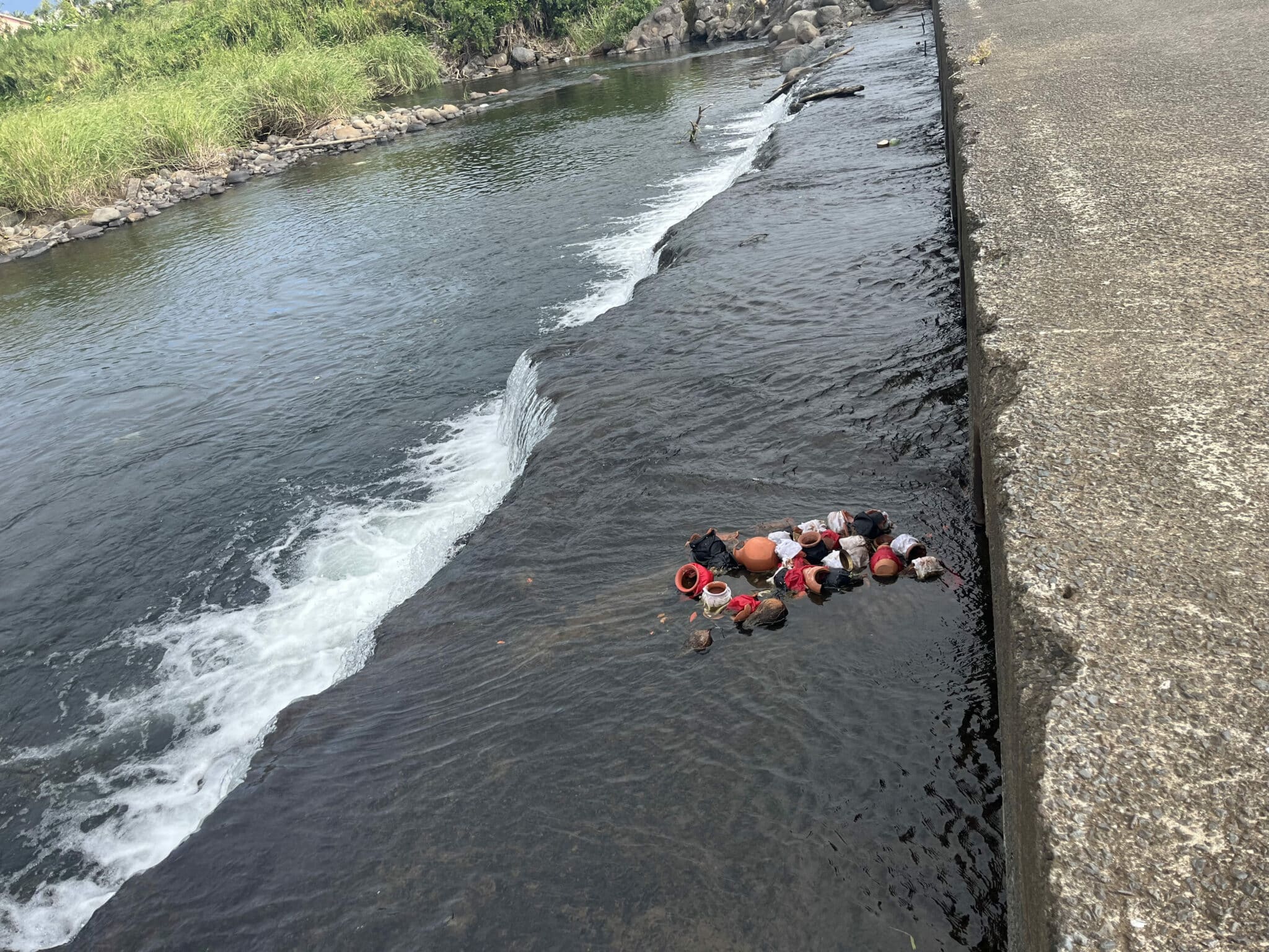 Les canaux illégaux de bichiques se font très rares dans ce périmètre selon lui. Jérôme fait également remarquer qu’après des cérémonies, les abords du radier sont sales. Les cérémonies qui y ont lieux laissent derrière elles des vases, des tissus et des fruits dans l’eau, ce qui n’encourage pas les gens à y pique-niquer le week-end.