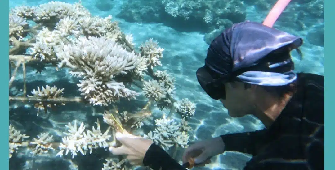 Caroline Massac : « Alors, nous essayons justement de montrer qu’un corail est un animal, que c’est vivant, que c’est fragile, et que ça pousse très lentement, et que ça présente énormément de bénéfices pour la vie côtière. Les récifs coralliens abritent un quart de la biodiversité marine mondiale, et ils représentent seulement 0,2 % de la surface des océans. On peut les comparer aux arbres de la forêt ».