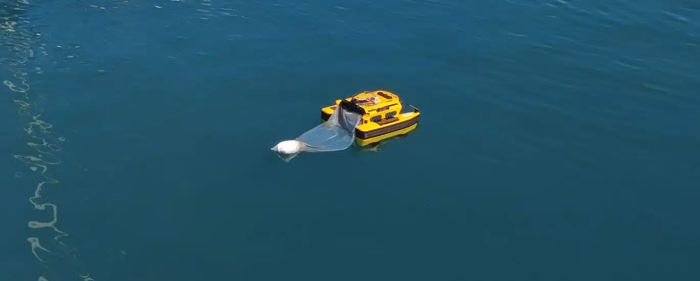 C’est sous un grand soleil que le petit cube jaune et noir, d’un peu moins d’un mètre sur un mètre de surface environ, a été mis à l’eau, devant la capitainerie du port de plaisance du Port. Télécommandé à distance, le Jellyfishbot s’est baladé sur une surface de quelques mètres dans l’objectif de capter à la fois les déchets visibles flottant à la surface, mais aussi les micro-déchets comprenant les particules et les polluants de type hydrocarbures.