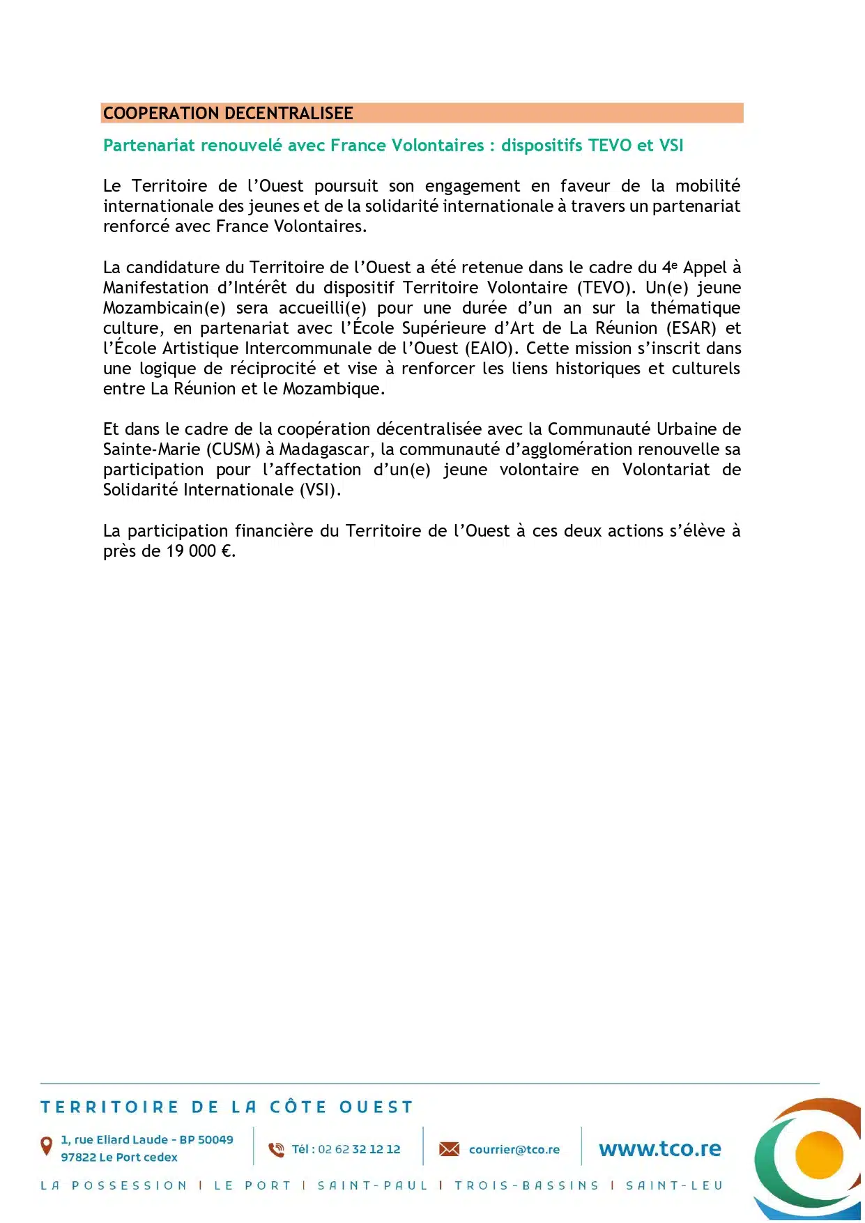 Le Territoire renforce également sa coopération avec la commune du Port dans le cadre de la requalification de la RHI Rivière des Galets, avec une participation de plus de 1,4 million d’euros pour les travaux de voiries et réseaux divers relevant des compétences eau et assainissement.