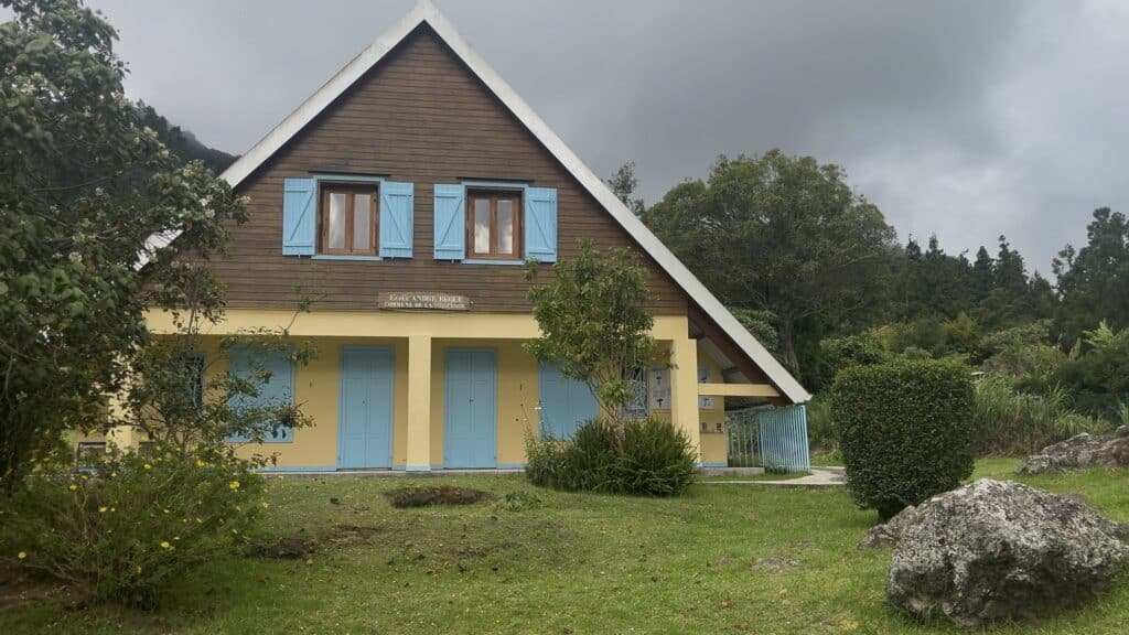 L’école compte 11 élèves, de 3 à 10 ans, tous dans la même classe. Bien qu’il y ait deux salles distinctes pour chaque cycle, Lallida s’organise chaque jour pour s’occuper de six niveaux différents. ‹‹ Ça peut être très très compliqué, il y a beaucoup de préparation en amont ››. L’enseignante doit préparer des temps d’apprentissages pour chaque niveau tous les jours, en jonglant avec les imprévus et les humeurs des marmailles. Heureusement, une ATSEM qui habite à La Nouvelle est présente tous les jours pour aider à organiser tout cela. L’emploi du temps est un peu différent de celui des écoles lambdas, l’école commence à 13h30 le lundi et termine à 11h30 le vendredi, pour laisser le choix à l’enseignant de redescendre dans les Bas. Mis à part cela, l’école fonctionne exactement comme celles du littoral avec une cantine, du sport, du jardinage et une sieste pour les petits.