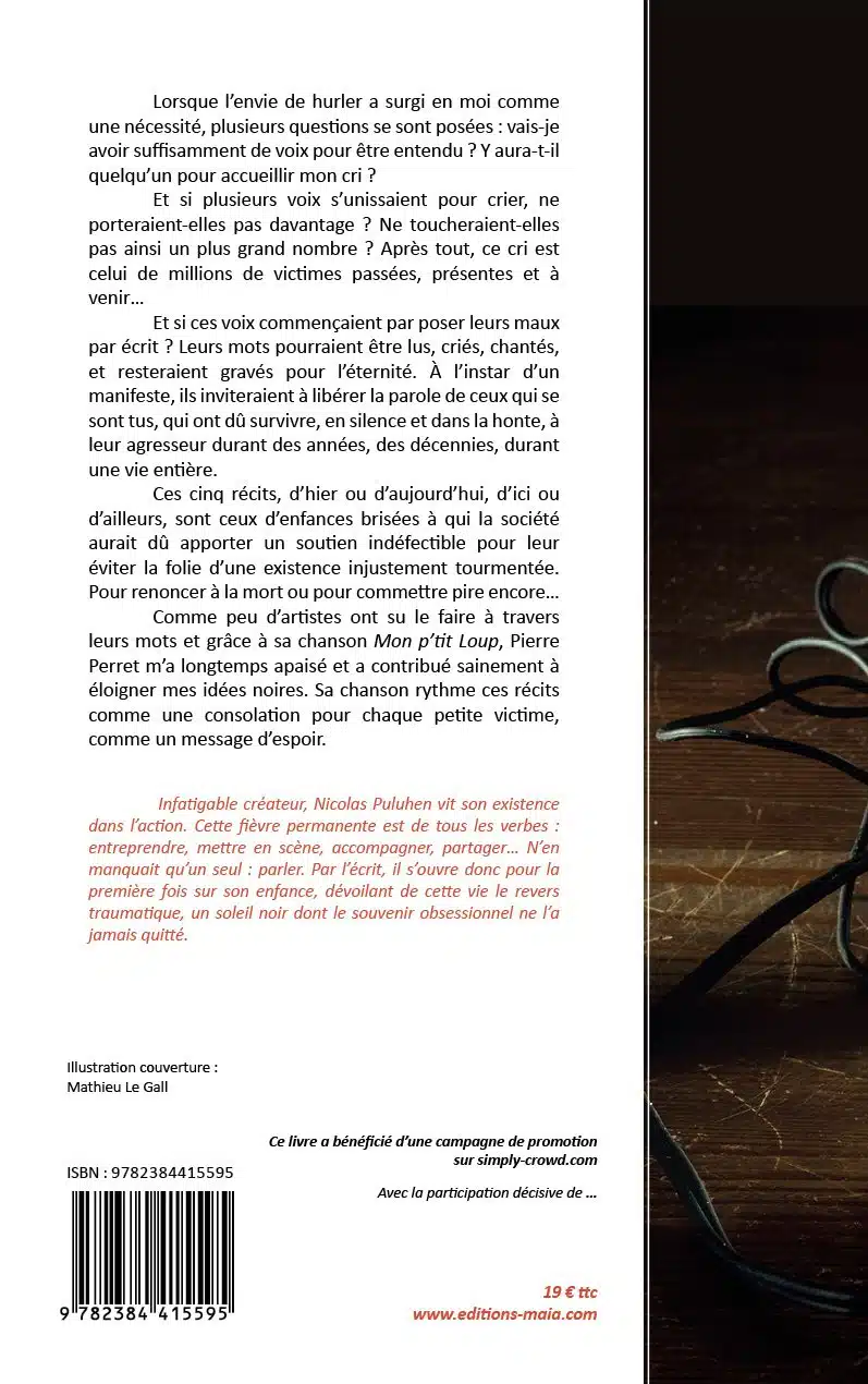 Cet ouvrage offre un champ d’investigation coloré de tant de tristes couleurs, qu’hélas, nombre de « P’tits loups » s’y reconnaîtront à coups sûr. Grand merci Nicolas, d’en avoir livré les douloureuses vérités trop rarement révélées. La concision de l’écriture n’en souligne que davantage le cruel réalisme. Chaleureux et sincère merci cher Nicolas pour ces nécessaires et salutaires récits.