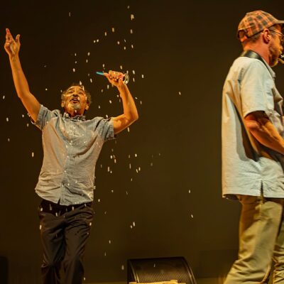 Wally avait fait un carton il y a quelques années à Komidi avec un spectacle en duo avec Vincent Roca : « Roca/Wally 150kg à nous deux, on vous en met un…