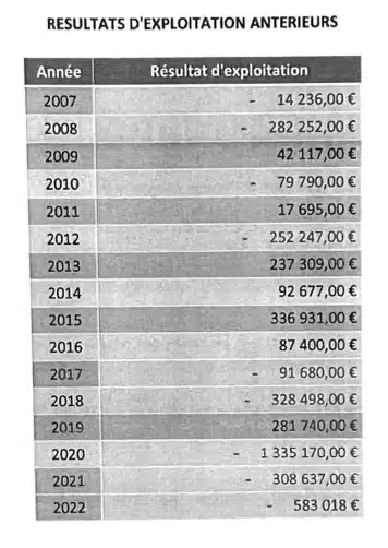 Les chiffres confirment le malaise. Les déficits se succèdent depuis 2020. Lors de l’AG du 8 octobre dernier, l’année 2023 s’est avérée aussi catastrophique que le pire des exercices qui datait de 2020 (année du Covid) avec 1,250 M€ de pertes.