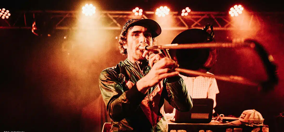 A la fois poètes, thérapeutes et rappeurs – aussi talentueux que sympathiques -, le groupe bouscule les codes et les consciences avec leur flow unique. Leur set, composé de plus d’une dizaine de titres parmi lesquels “Es-Tu Prêt”, “Marchand de Fables” ou “Bercé pas le flow”, plonge la salle dans une atmosphère vibrante et engagée. Sur scène leur synergie est palpable et leur voix donnent le tempo : Sam manie sa guitare électrique avec fougue, Louis joue du trombone entre puissance et finesse et Simon module des textures électroniques avec une précision chirurgicale.