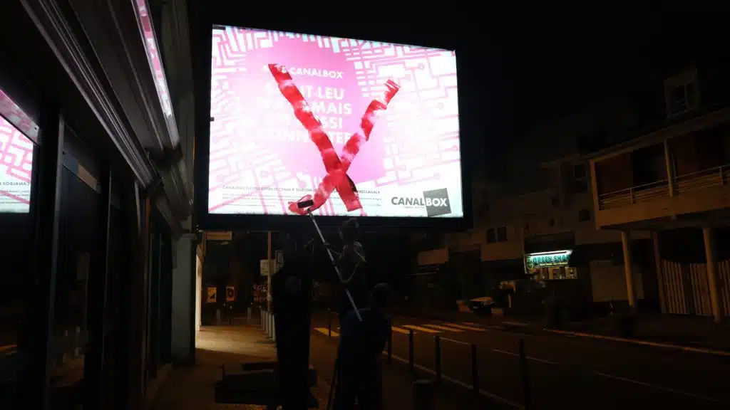 Il est cinq heures, le couvre-feu est levé. Dans les rues de Saint-Leu, la circulation est déjà importante, marché du samedi matin. Le 8 janvier dernier, avant l’aube, les militants d’Extinction Rebellion étaient déjà à l’ouvrage. Une trentaine de panneaux publicitaires « illégaux » seront dénoncés d’une croix rouge.