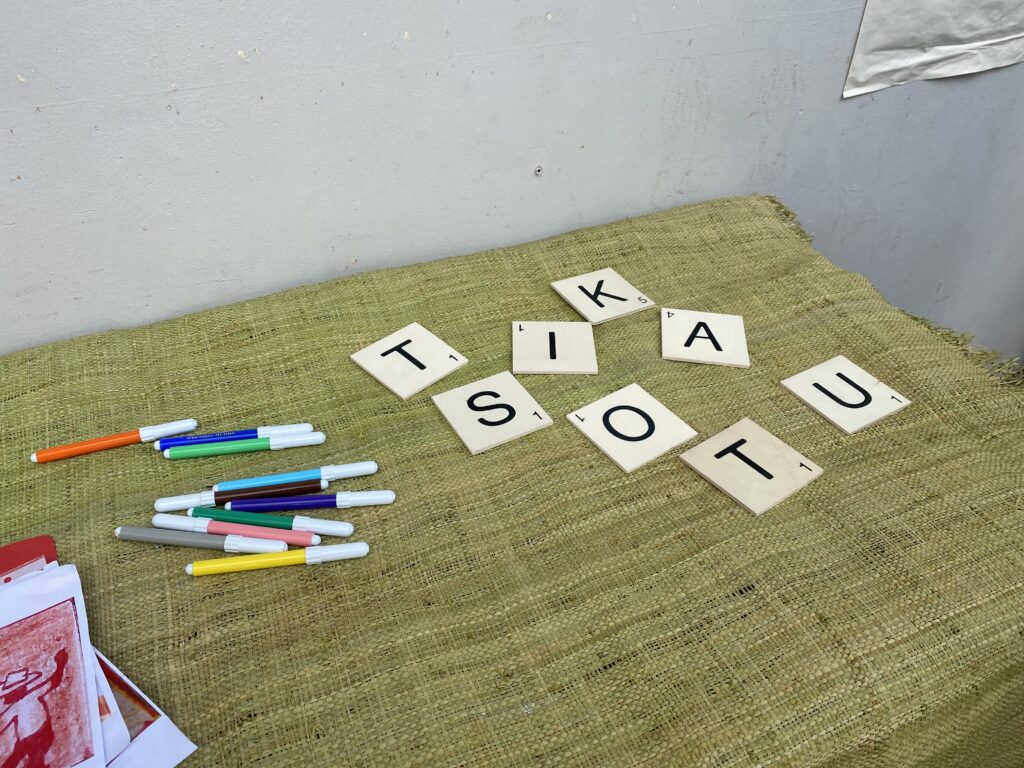 Pascaline est membre de l’association Tour Létan Saint-Paul, pôle territorial de coopération économique (PTCE) œuvrant de Cap Homard à Omega, sur l’économie et le tourisme durables. Derrière son stand, elle vend les tressages coco d’une des habitantes du quartier. Abat-jours, paniers à épices, bols avec couvercles sont vendus en Tikatsou. Pour Pascaline, cette initiative est le moyen de renforcer l’économie locale : « L’intérêt, c’est de garder la monnaie ici. Si on utilise tous des Tikatsous, l’argent i sorte pu. »