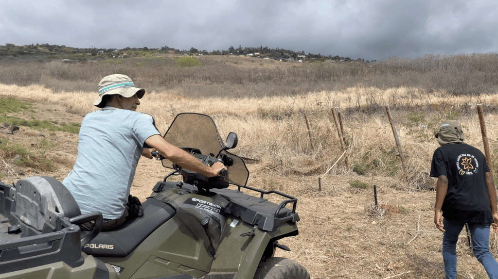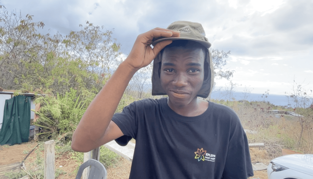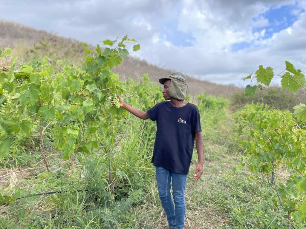 « On a trois variétés, deux de raisin blanc : le muscat de Saint Valliers et une autre non identifiée dont la souche est Saint-Leusienne et une de rouge, le fameux raisin Isabelle » nous explique Stéphane, le père. Stéphane Thébaudin a été à la pointe de l’innovation de la filière spiruline à La Réunion dans les années 2010. Aujourd’hui, il expérimente la vigne dans les hauts de Saint-Leu où il transmet son savoir et sa passion à son fils fraichement bachelier du lycée agricole de Saint-Joseph. Stéphane surmonte son handicap grâce à son quad tous-terrains qui lui permet d’accompagner Florian sur la vigne.