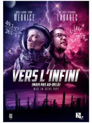 Les deux acteurs nous proposent un voyage à travers deux infinis : celui de la connerie humaine et celui de l’univers. Cette sorte de conférence-spectacle à deux voix mêle science et humour . L’enseignant-chercheur en tenue de ville explique, le « perturbateur », en blouse blanche nous embarque dans des digressions politiques et pseudo-sociales. On croise planètes, étoiles, galaxies, mais aussi … des chefs d’États (stupides), Eric Ciotti, Francis Lalanne, Cyril Hanouna, … ! Au bout du compte, ils auront sondé chacun à leur façon l’infini. Celui de l’univers pour l’un, celui de la bêtise humaine pour l’autre !