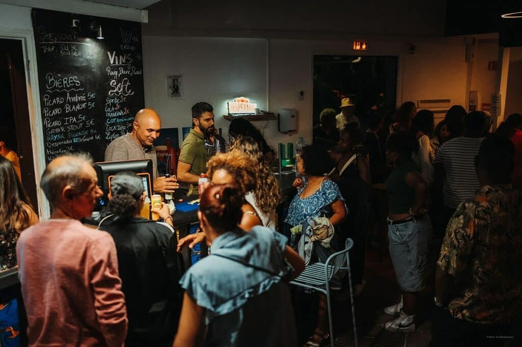 Sous les étoiles exactement le public est venu en nombre et la soirée affiche complet depuis la veille. Dans la salle, koté kour et koté jardin, l’effervescence des spectateurs et leur impatience est palpable et la salle comble attend Lilojooe de pied ferme…. Pour patienter, la « secret room » du Bisik, magnifiquement décorée pour l’occasion, propose des séances photos avec Frédéric Pothin et Séverine Hubas de Fanal Fotografi pour immortaliser la joie de vivre et partager de magnifiques moments de bonheur.