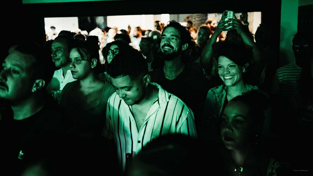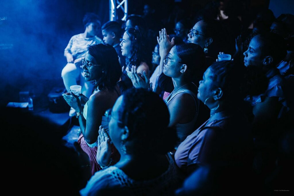 L’excitation ambiante est à son comble et le moins que l’on puisse dire c’est que Liljooe sait comment faire languir son public. Décontracté, pull fleuri et lunettes signature, c’est sous des applaudissements nourris, que l’artiste se fraie un chemin vers ses musiciens et commence le voyage dans les contrées de l’amour avec “Plus 2 Nous”. Dès les premières notes, la connexion est instantanée : les chants des spectateurs résonnent dans les murs du Bisik, tandis que les rythmes et les mouvements de danse enflamment l’atmosphère.