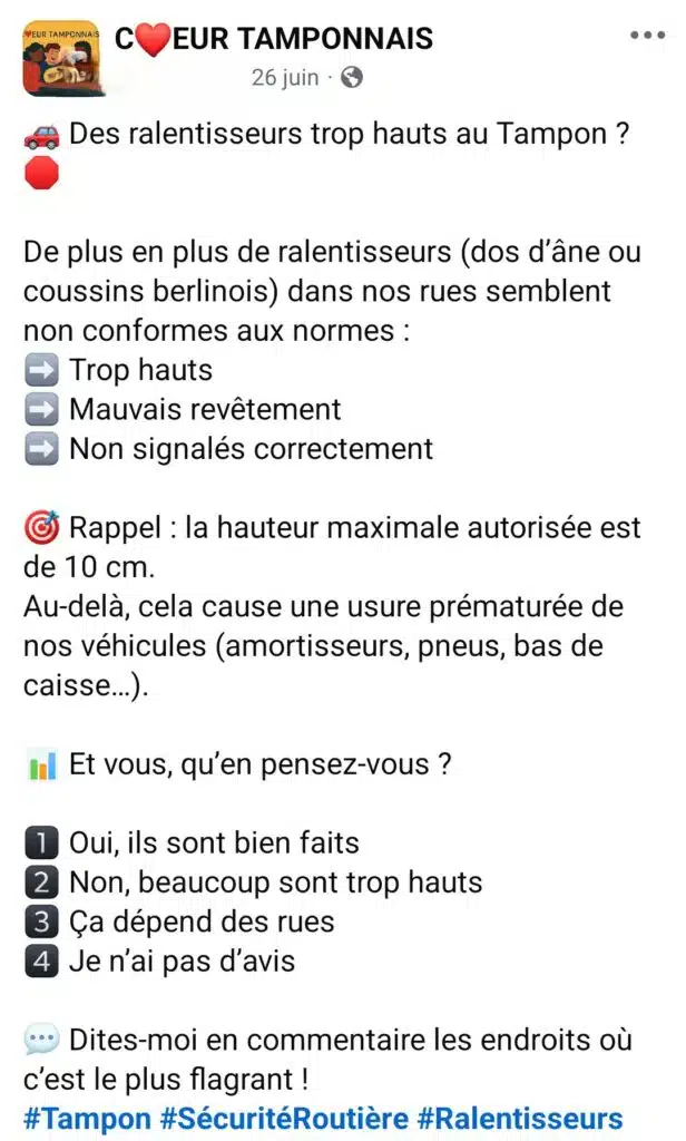 Ces ralentisseurs sont bien sûr nécessaires pour obliger les automobilistes à abaisser leur vitesse et éviter les accidents déjà trop nombreux. La Réunion est le seizième département français le plus touché par les accidents de la route en 2023, pour 931 accidents corporels en 2024.