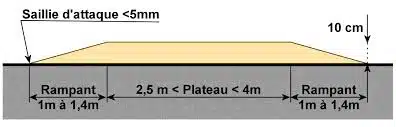 En théorie, l’implantation des ralentisseurs est strictement encadrée par la réglementation et les recommandations techniques du Cerema (Centre d’études et d’expertise sur les risques, l’environnement, la mobilité et l’aménagement). Les seuls ralentisseurs normés sont les ralentisseurs de type dos-d’âne et trapézoïdal, définis par le décret n°94-447 du 27 mai 1994 et la norme NF P 98-300. Leur hauteur maximale est fixée à 10 cm, avec une longueur minimale de 4 mètres pour les dos-d’âne et 2,5 mètres pour les trapézoïdaux.