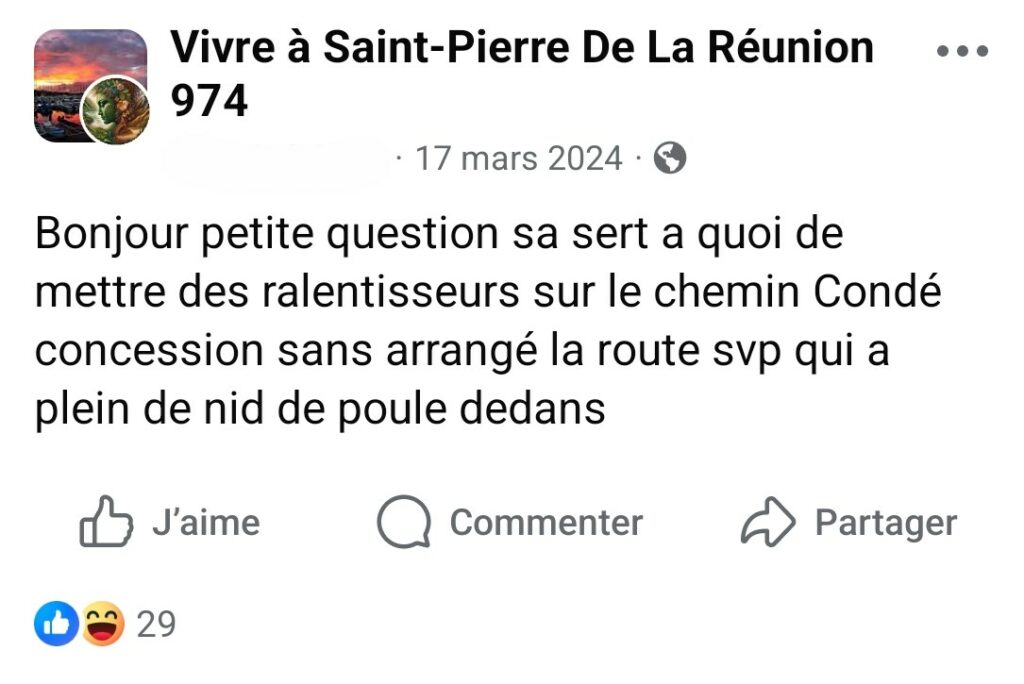 Ces ralentisseurs sont bien sûr nécessaires pour obliger les automobilistes à abaisser leur vitesse et éviter les accidents déjà trop nombreux. La Réunion est le seizième département français le plus touché par les accidents de la route en 2023, pour 931 accidents corporels en 2024.