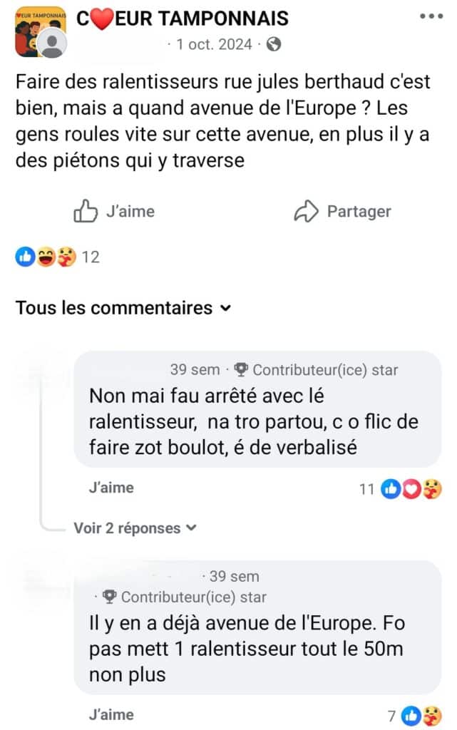 Frédéric Legendre, directeur des services techniques de la commune de Bras-Panon, nous répond sur les raisons qui poussent les communes à implanter plus de ralentisseurs : « C’est toujours un motif de sécurité routière pour forcer les usagers à ralentir quand on a constaté des excès de vitesse sur une portion. On peut aussi en installer par prévention quand on rénove une voirie ou le faire à la demande de riverains. Sur les routes départementales, c’est plus compliqué car on ne peut pas en installer hors agglomération. Il faut que le tronçon concerné soit déjà limité à 50 km/h pour qu’on l’abaisse à 30 km/h avec le ralentisseur. »