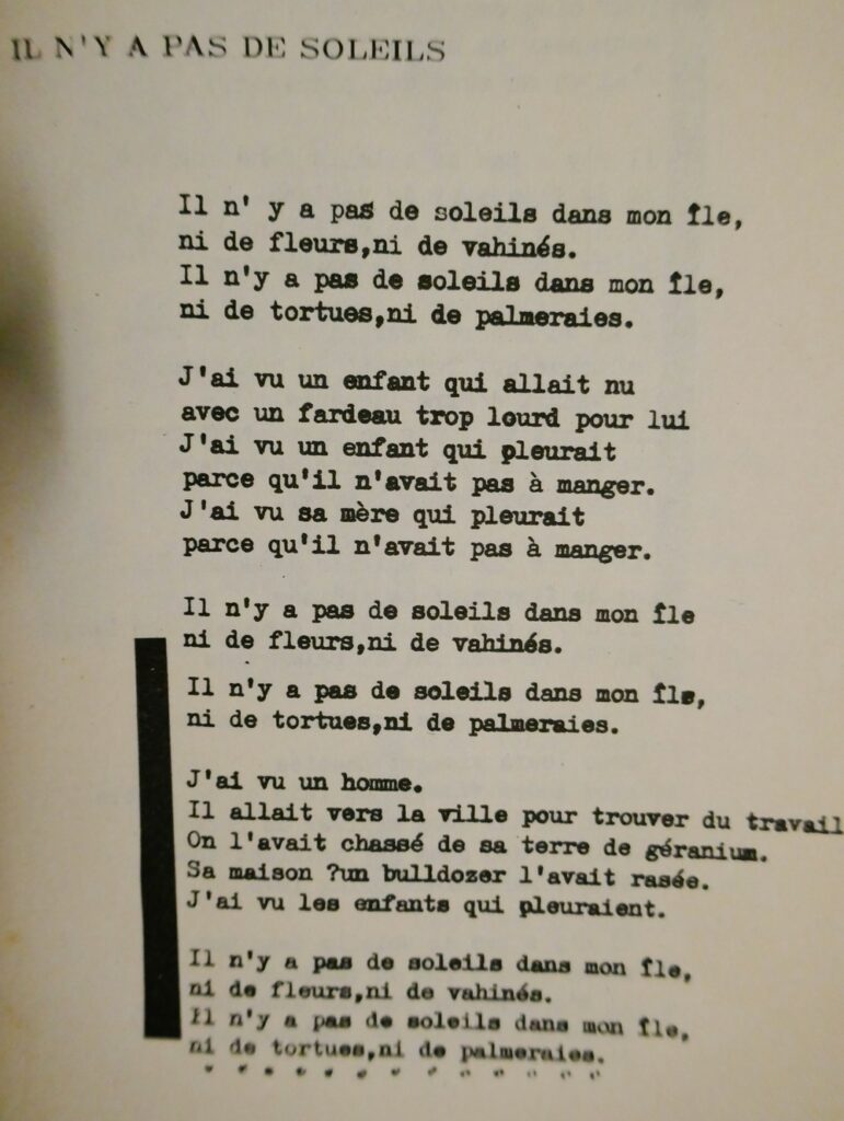 En effet, en 1992, nous avons publié un recueil collectif « terre tout kouler » avec des textes d’Edouard Maunick, Alain Lorraine, Gilbert Aubry…
