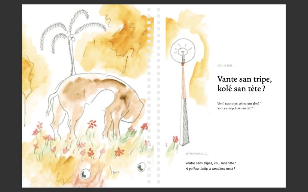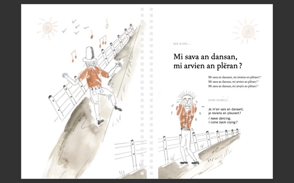 Toujours avec Lofis Lalang, Parallèle Sud présente encore cette semaine trois nouvelles sirandanes tirées d’un livre édité par l’association militante pour la langue créole en partenariat avec l’association Tikouti. La sirandane, quelque part entre la devinette et la charade, est un exercice de style propre à la culture réunionnaise, des petites énigmes pour amuser et cultiver les enfants; Elle commence toujours par la formule « kosa in soz ? ». Les dessins sont de Patrick Booz. La première page présente l’énigme à découvrir, la seconde la réponse.