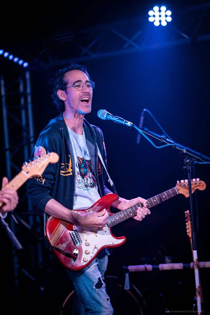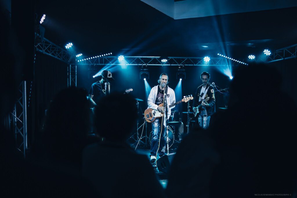Après le set de Joan’R, place au band pop rock made in Réunion, Lou composé de Frédéric Nebel à la guitare et au chant, Dominique Beauté à la guitare lead, Xavier Debayle à la basse et David Adelson à la batterie. Au menu les titres de l’album du groupe, « Seconde Chance », entre espoir, amour et rêve d’un monde plus humain. Le band démarre avec « Nuit Blanche » après un magnifique solo de David qui fait se masser le public devant la scène. Avec le titre « Jérémy », Lou nous interpelle et nous rappelle que l’on a tous le droit à l’amour, peu importe notre situation.