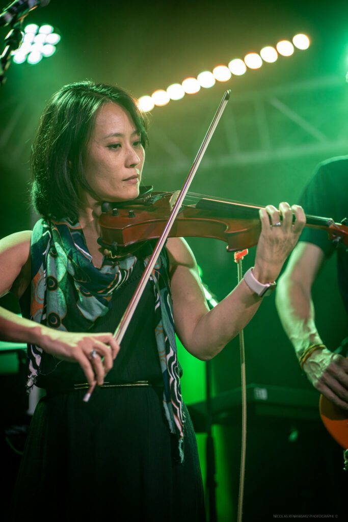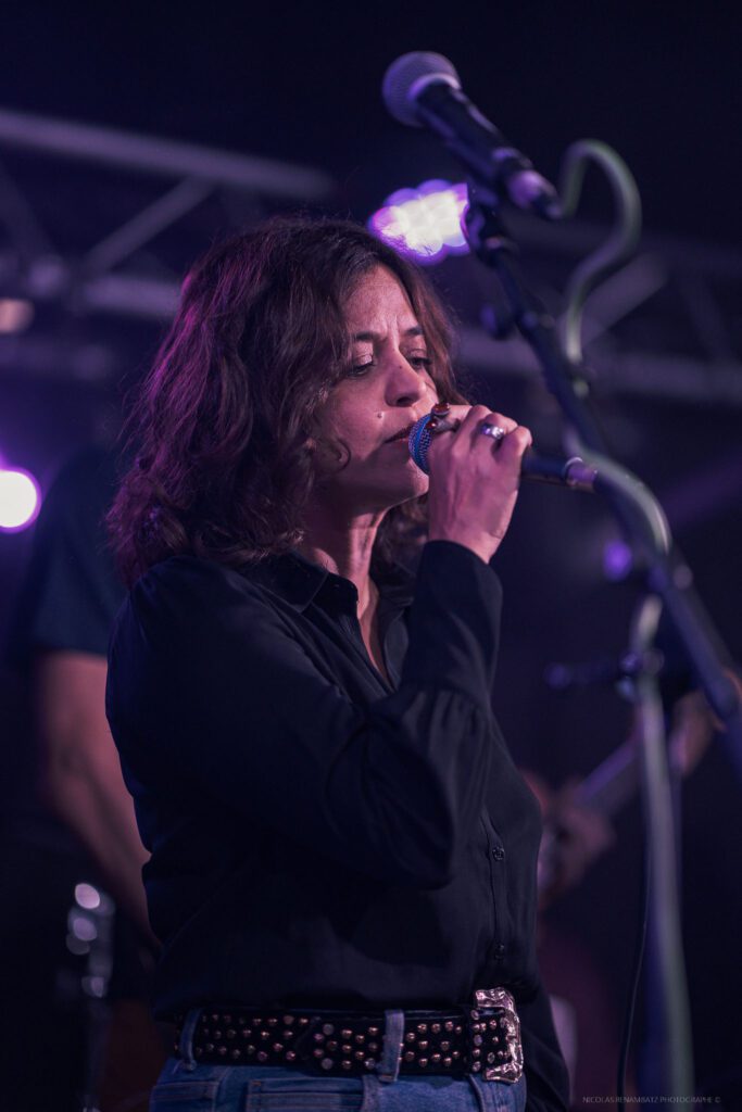 Ensuite, comme une ballade sur le sable mouillé, Frédéric Nebel nous guide et nous enseigne comment laisser sa trace, son histoire. Un voyage à travers ses histoires, les disputes, les questions sans réponses, les relations avec l’être cher… Un échange avec Stéphanie Bégert, une amie de longue date avec qui il a coécrit « Parle-moi » qu’ils interprétent en duo et qui reflète les lourds silences dans les moments difficiles avec sa moitié. Une autre amie du groupe, Diem, vient apporter la légereté de son violon avec talent et virtuosité… Des moments de partage doux et subtils avant une attaque contre le masochisme, où Lou aborde le consentement avec « Non C Non » accompagné par le public convaincu et sous le charme.
