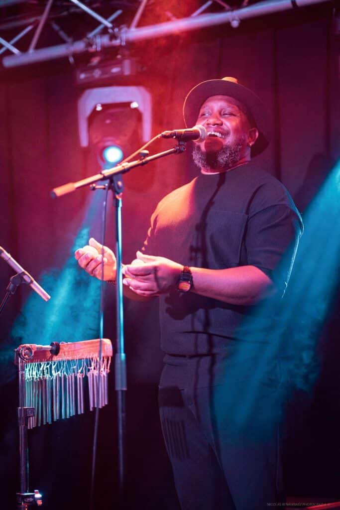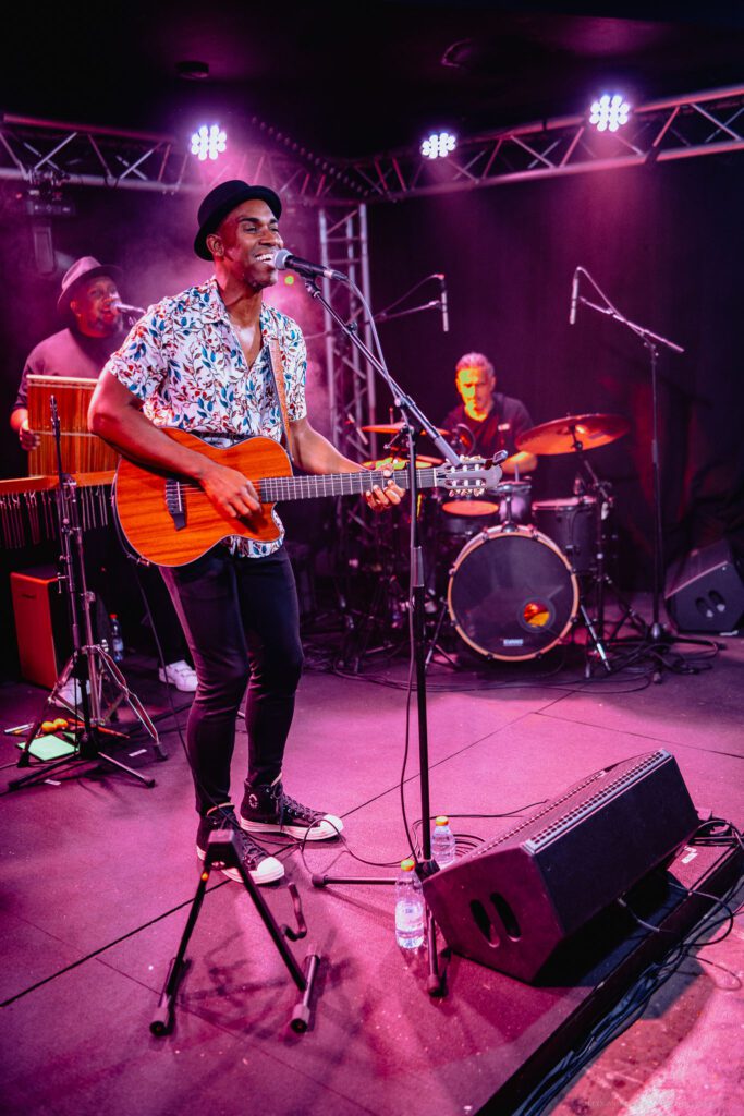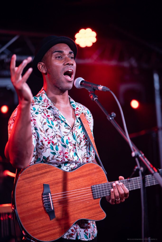 Le temps d’un changement de plateau, et c’est au tour du JF Gang de s’emparer de la scène avec une magnifique entrée chaloupée de Jean François Pounoussamy. Accompagné de son Gang JF donne le ton avec son ode à la kafrine la Rényion « i fé cass colé » avec « Alala Kafrine ». Le charme du groupe s’empare alors du public qui se réjouissait et chantait en chœur. Jean François n’hésite pas à nous partager sa bonne humeur et son grand sourire à travers ses anecdotes entre Paris et son Péi, La Réunion à laquelle il dédie un bel «Omaz» . Accompagné par les talentueux Ludo Pérez à la batterie, David Rechouze aux chœurs et aux percussions, et Matthieu Brillant aux claviers, Jean François nous livre aussi ses inquiétudes quant au futur de nos jeunes avec son questionnement « Est-ce le bon chemin ? »