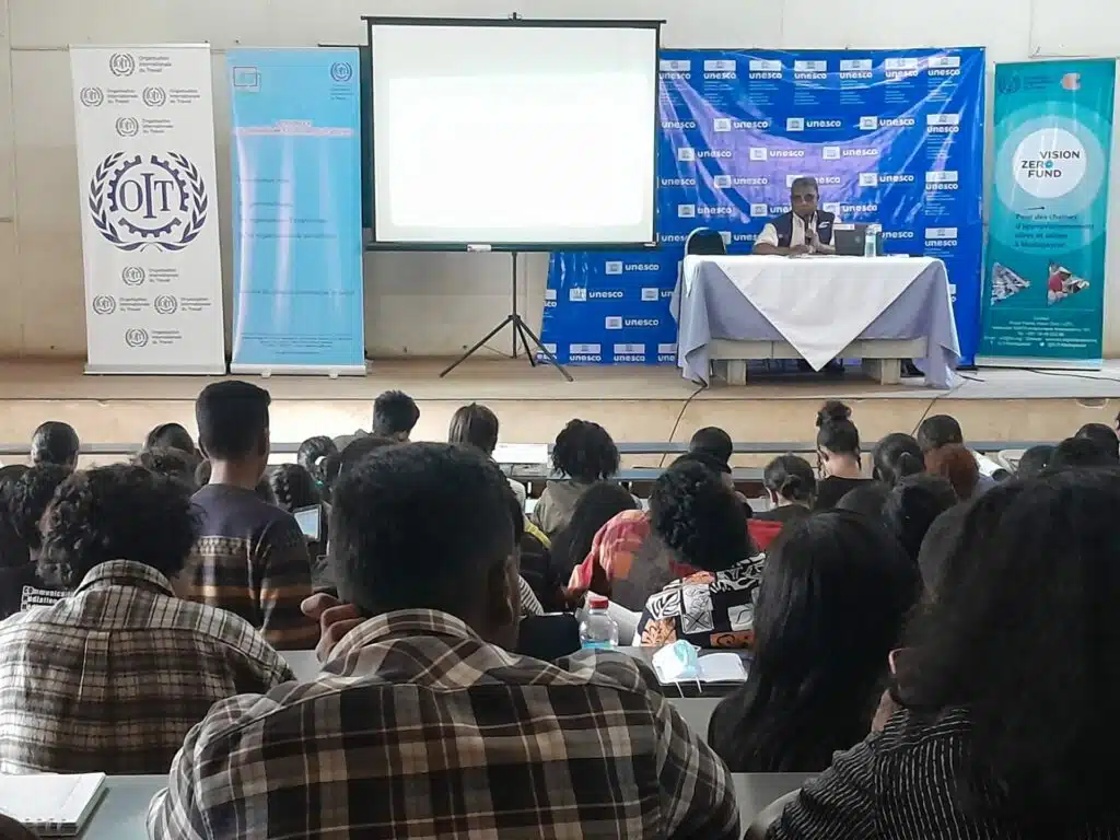 Dans le cadre de la Journée internationale de la liberté de presse à Madagascar, une conférence a été organisée par l’UNESCO, sous le haut patronage du Ministère de la Communication et de la Culture en collaboration avec la Mention COmmunication, Médiation, Médias et Organisation de l’Université d’Antananarivo. L’événement s’est déroulé le 2 mai 2023 dans l’Amphi A du Département Économie, Gestion et Sociologie à l’Université d’Antananarivo. « Le Dialogue social et l’OIT » a été le sujet de la conférence. Elle était tenue par un représentant de l’Organisation Internationale du Travail (OIT), Monsieur Lauréat Rasolofoniainarison, coordonnateur national Projet OIT/VZF, Inspecteur du Travail et des Lois Sociales. Dans une interview, il apporte des précisions sur son intervention.