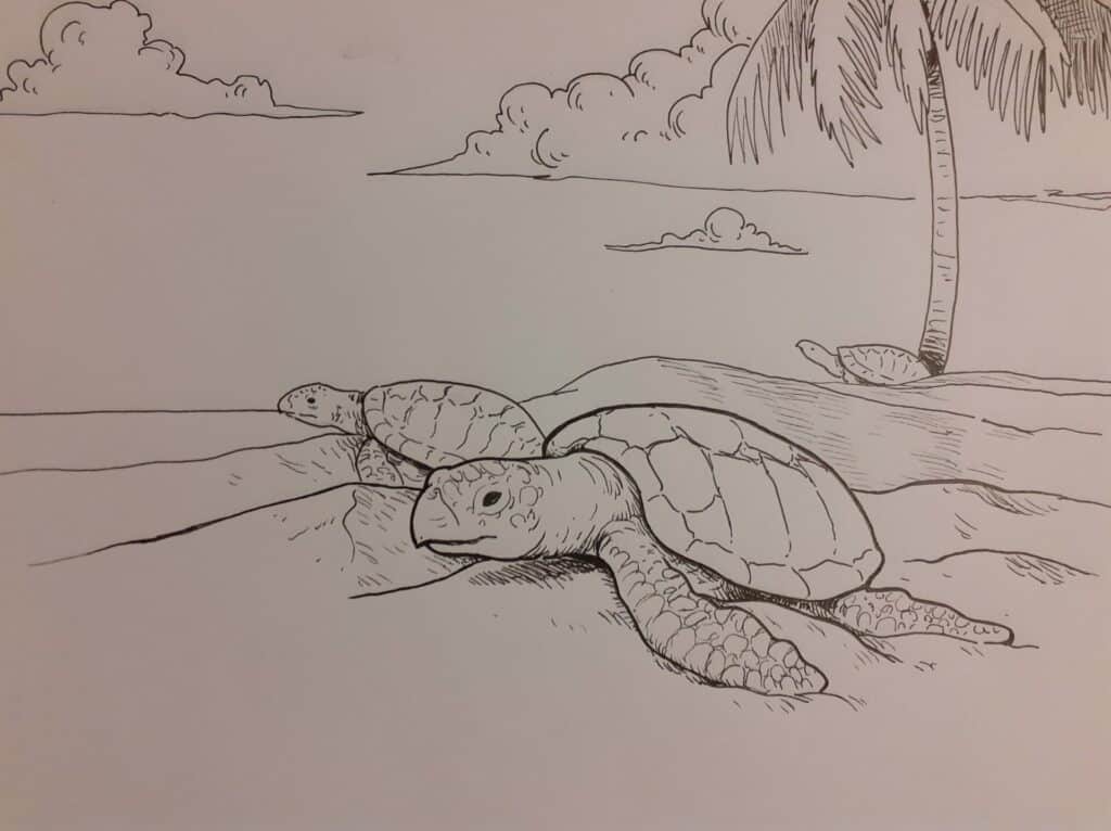 Sur l’île, on en trouve deux : les tortues vertes et les tortues imbriquées. Les premières pondent toute l’année quand les tortues imbriquées préfèrent les mois de novembre à fin mars. Bien sûr le braconnage existe, il suffit de s’éloigner des plages fréquentées pour s’en rendre compte. Les tortues — notamment les imbriquées, plus vulnérables — sont chassées pour la viande ou la carapace. L’augmentation de la population montre toutefois que le phénomène est en diminution.