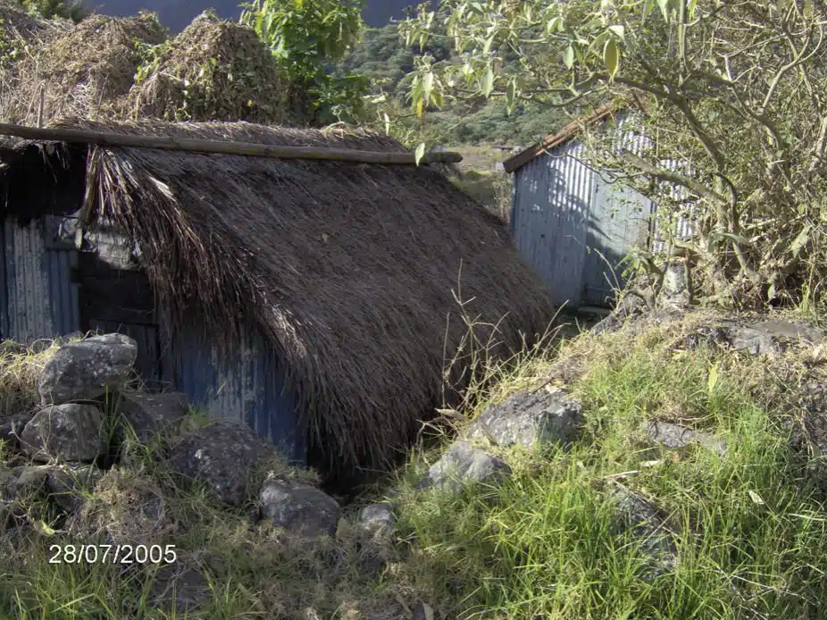 1 – La première, historique, concerne les cases d’habitation qui abritaient l’ensemble de la famille et de son existence, et dont on ne trouve en ce début du 21ème siècle plus aucun exemplaire en usage, à ma connaissance à Mafate, même si certaines bâtisses en gardent encore les traces (par exemple chez Sylvio Thomas, à Bourse, héritier de la concession de défunt Albert Attache vers 2000).